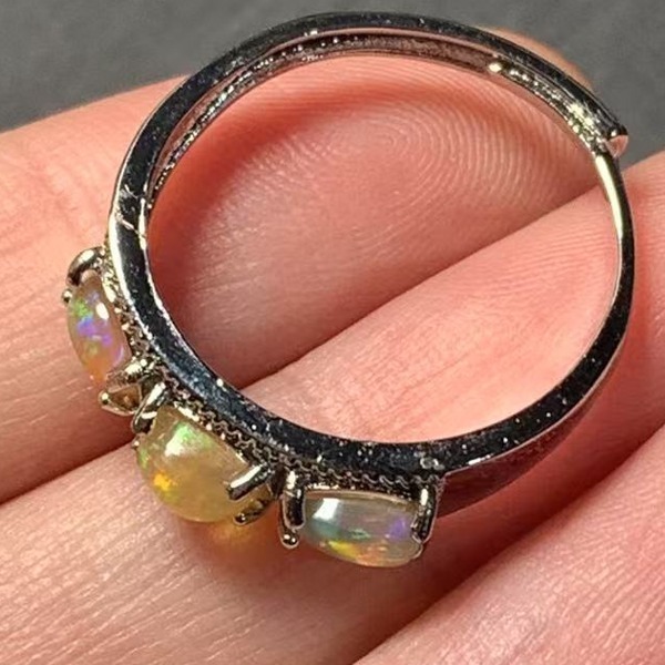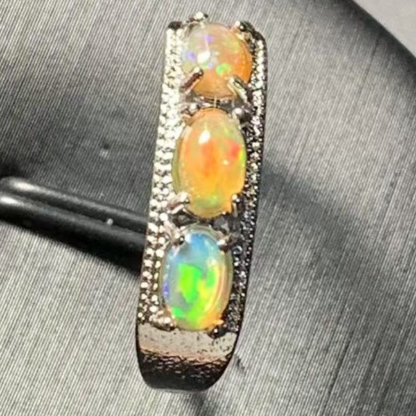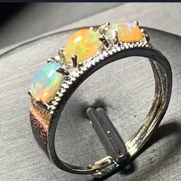 【新品】女性用の天然オパール リング、925シルバーメッキ、シンプルなファインジュエリー、クラシックスタイル