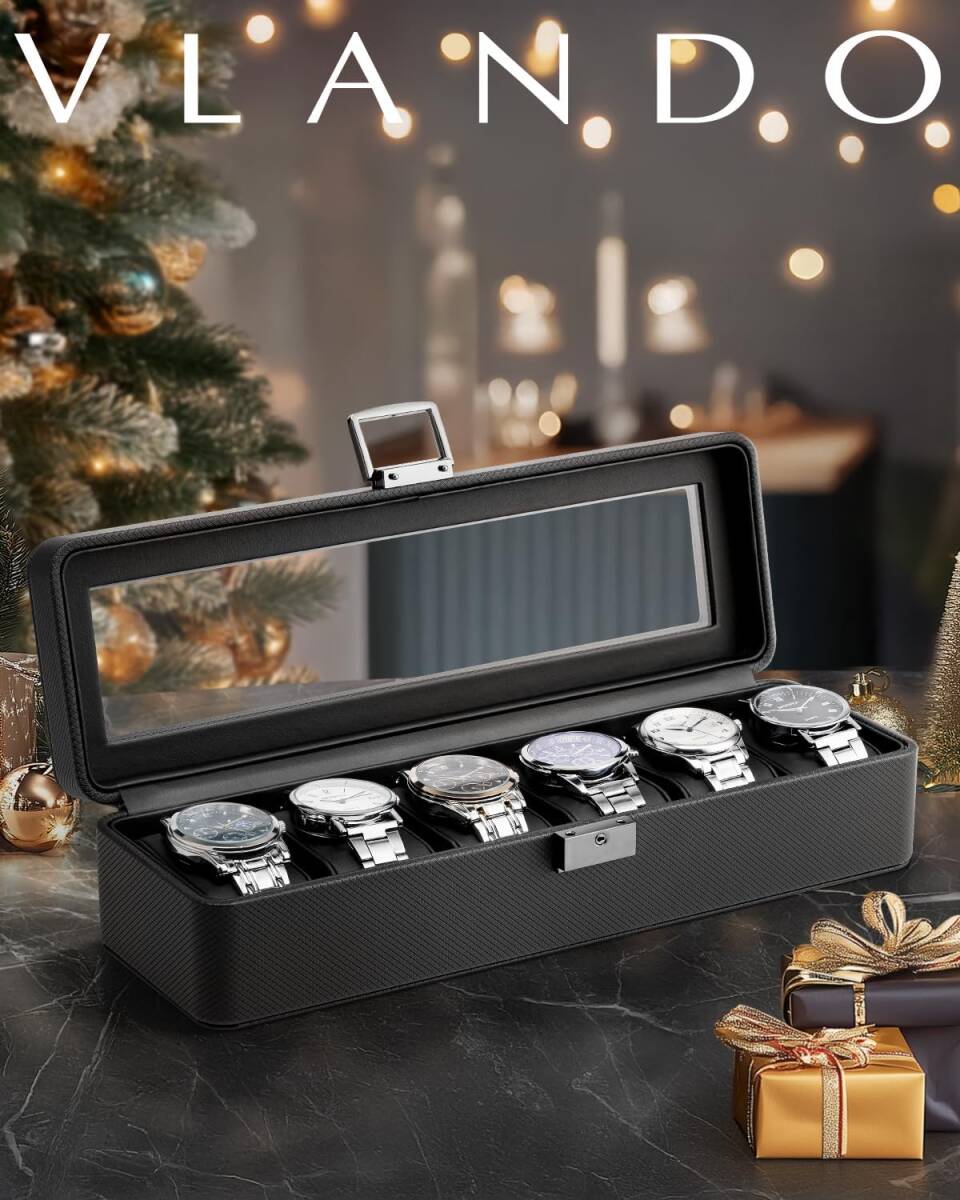 腕時計ケース 収納ボックス アクセサリーケース アクセサリー 収納 ブラック 6本用 PU製 男性 誕生日プレゼント 贈り物