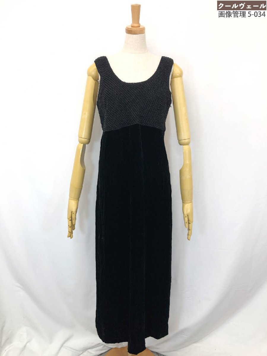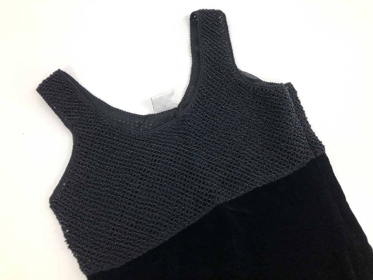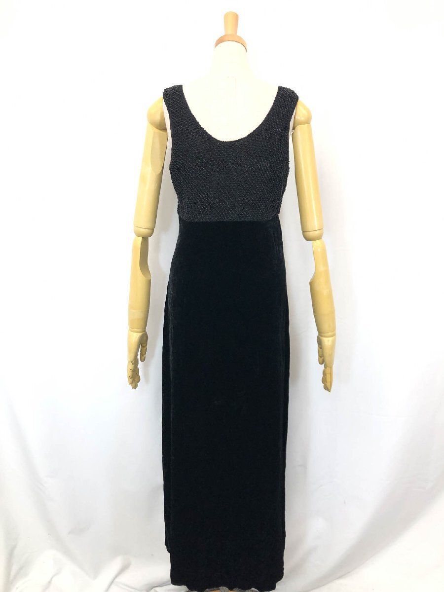 美品【DKNY ディーケーエヌワイ】ビーズ装飾切替 ノースリーブ ロングベロアワンピース ドレス(レディース) ブラック ◇17LO3820◇