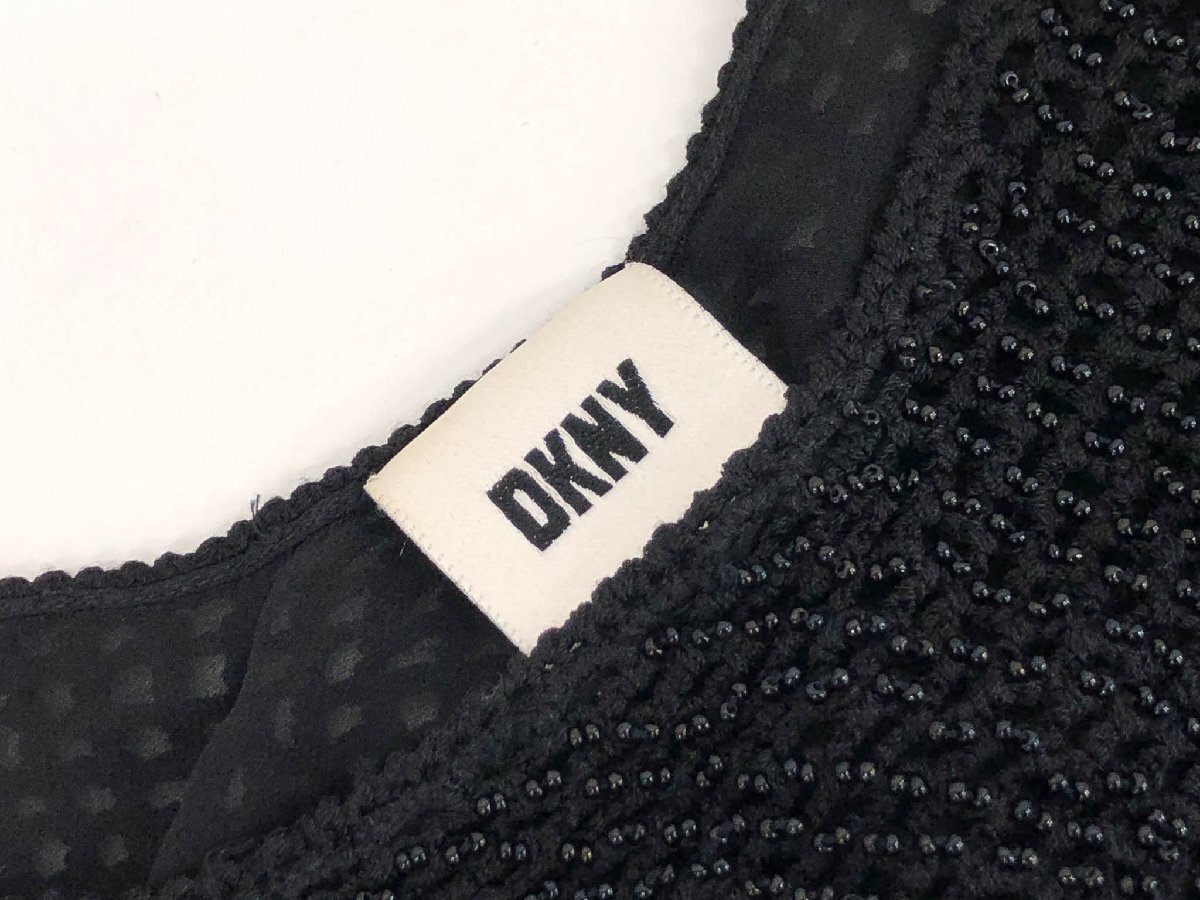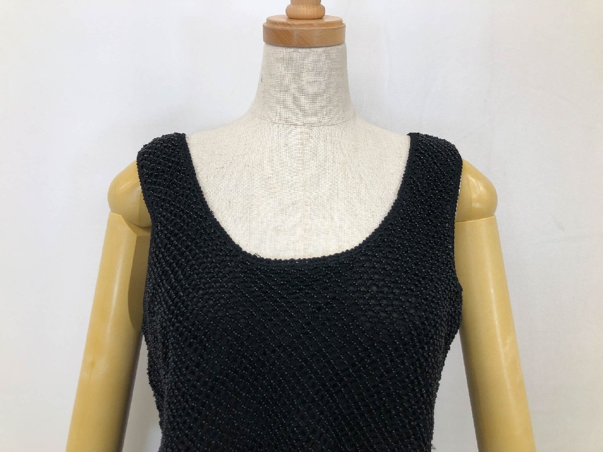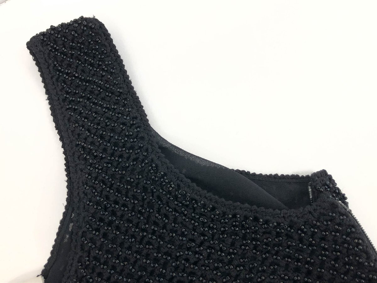 美品【DKNY ディーケーエヌワイ】ビーズ装飾切替 ノースリーブ ロングベロアワンピース ドレス(レディース) ブラック ◇17LO3820◇