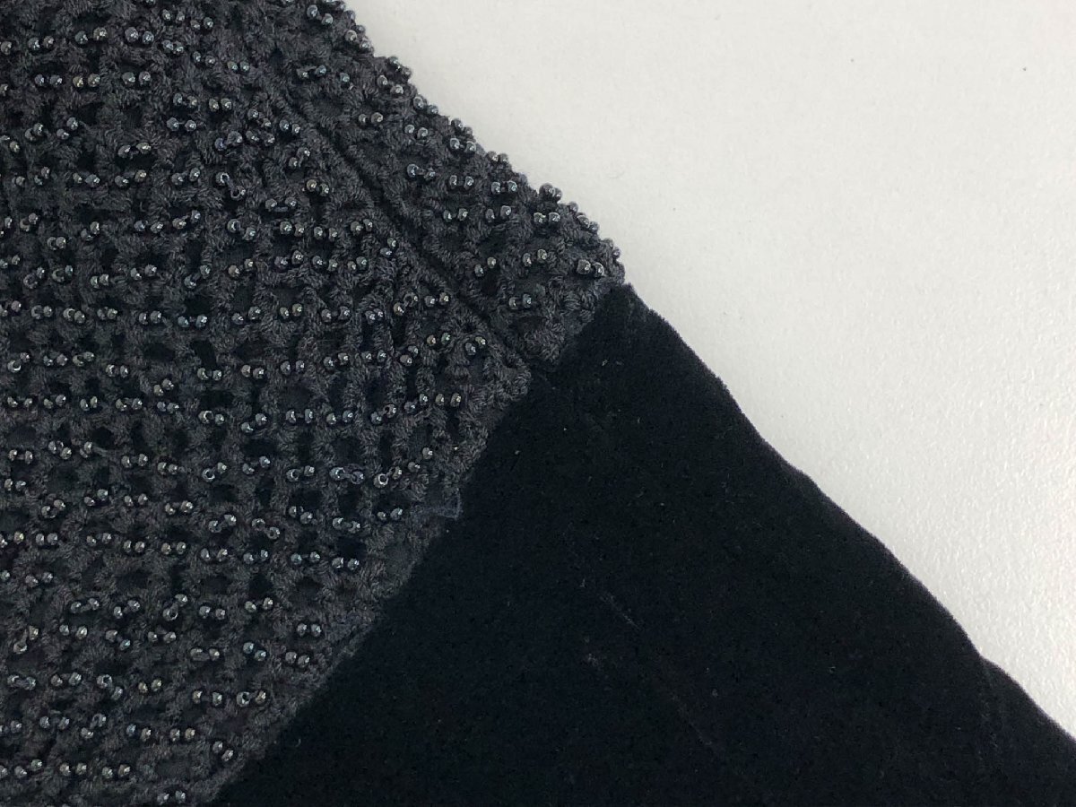 ・ベロア生地のロングワンピースです。ビーズ装飾切替のデザインです。