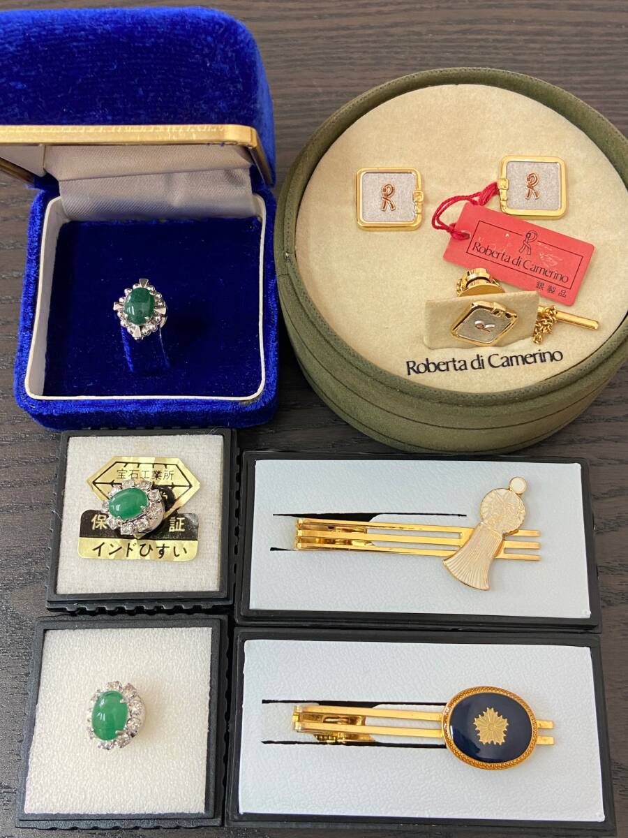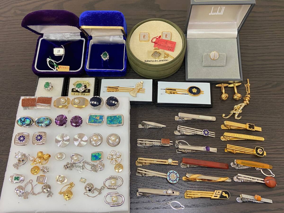 「【タイピン タイタック カフス 大量まとめセット】dunhill ダンヒル / Roberta di Camerino / インド翡翠 / ダイヤモンド / パール 等」の出品です。