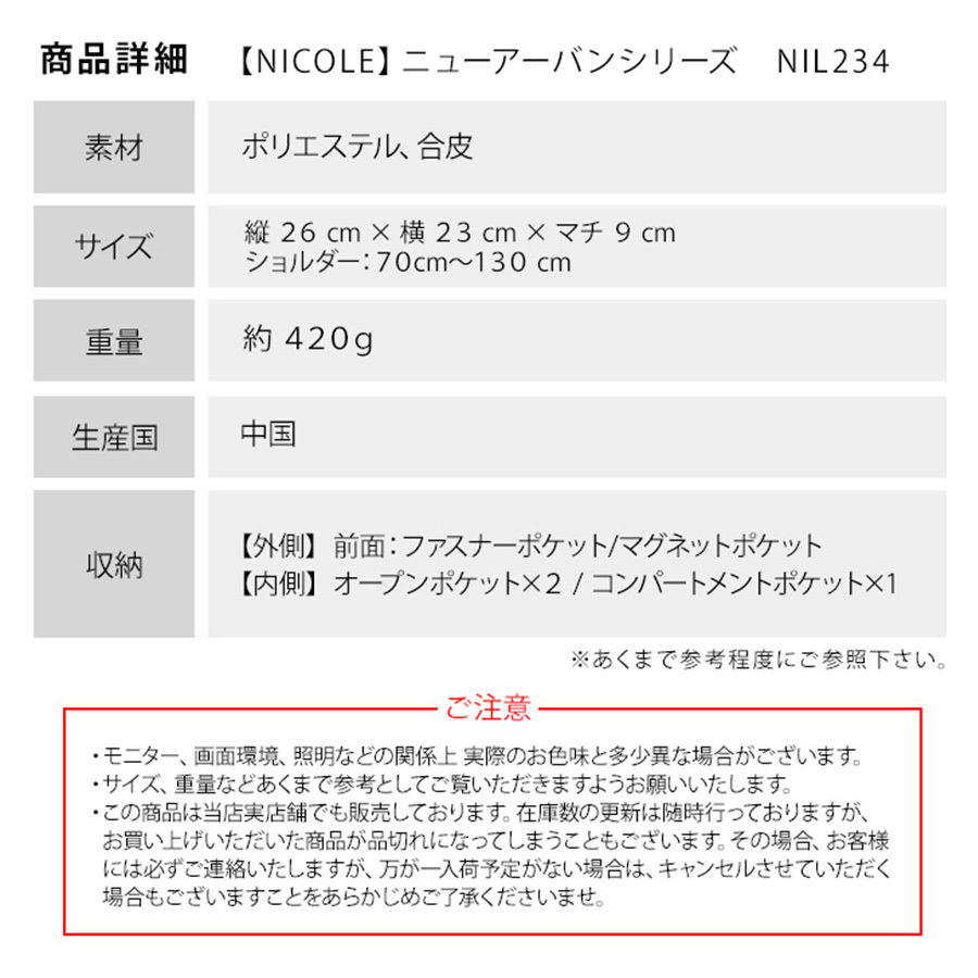 商品名 | NIL234【22.ブラウン】ニューアーバン 縦型 ショルダーバッグ [ニコル] [NICOLE] |