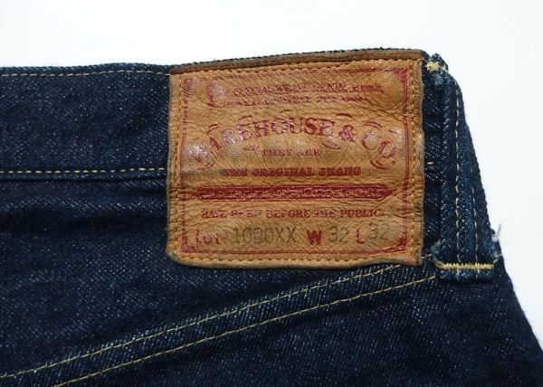 <商品名> WAREHOUSE ウエアハウス DEAD STOCK BLUE デッドストックブルー Lot 1000XX デニム パンツ W32 <サイズ> W32 <詳しい寸法> ウエスト86股上31股下82裾幅21.5(単位:㎝) ぐらいです。 <商品状態> 多少の使用感、素材特有の着用に伴うスレや色あせ、パッチに薄汚れがございますが色は濃く全体的に見て良好です。 <商品説明> DEAD STOCK BLUE Lot 1000XX