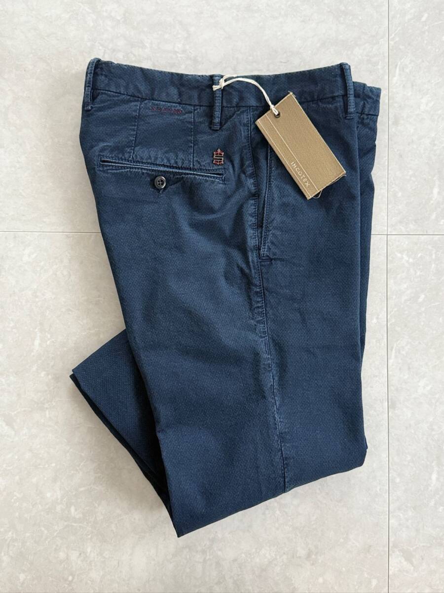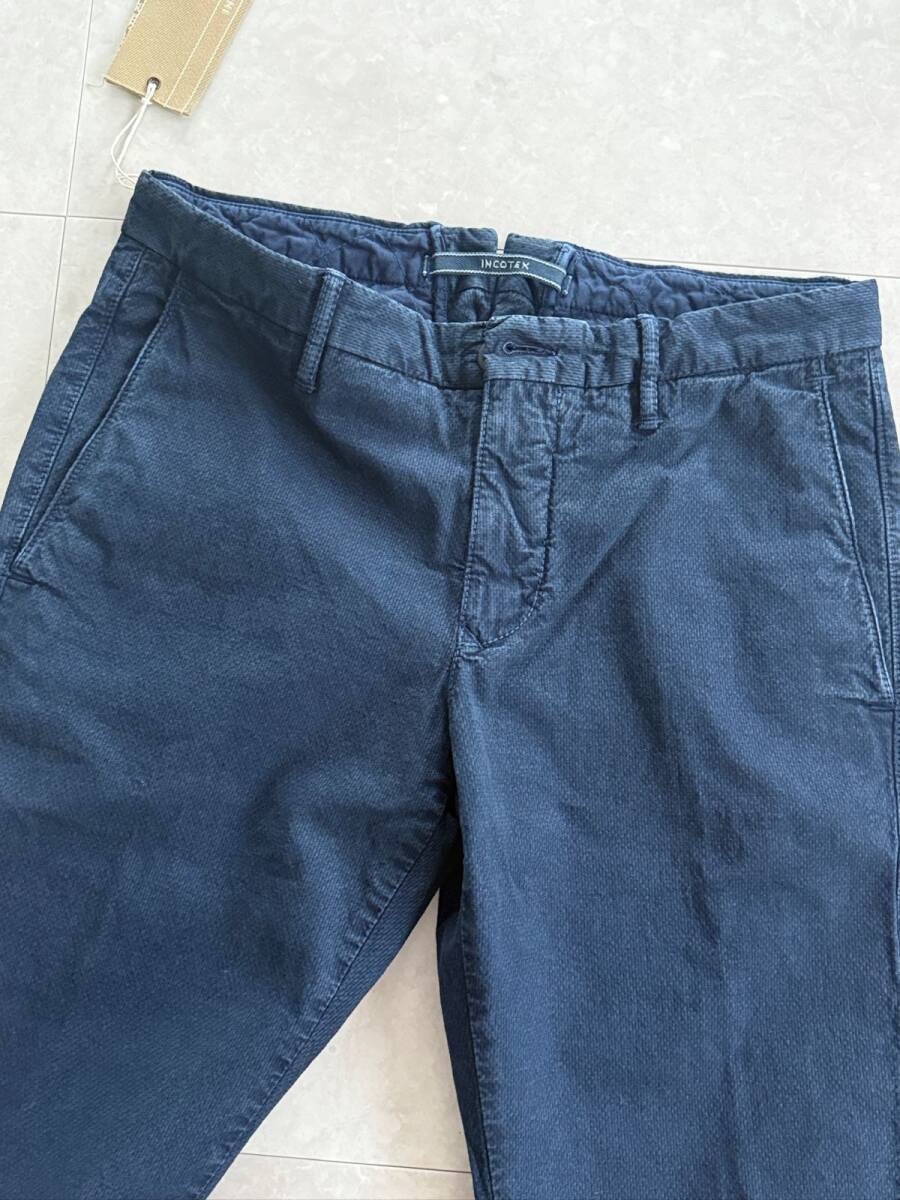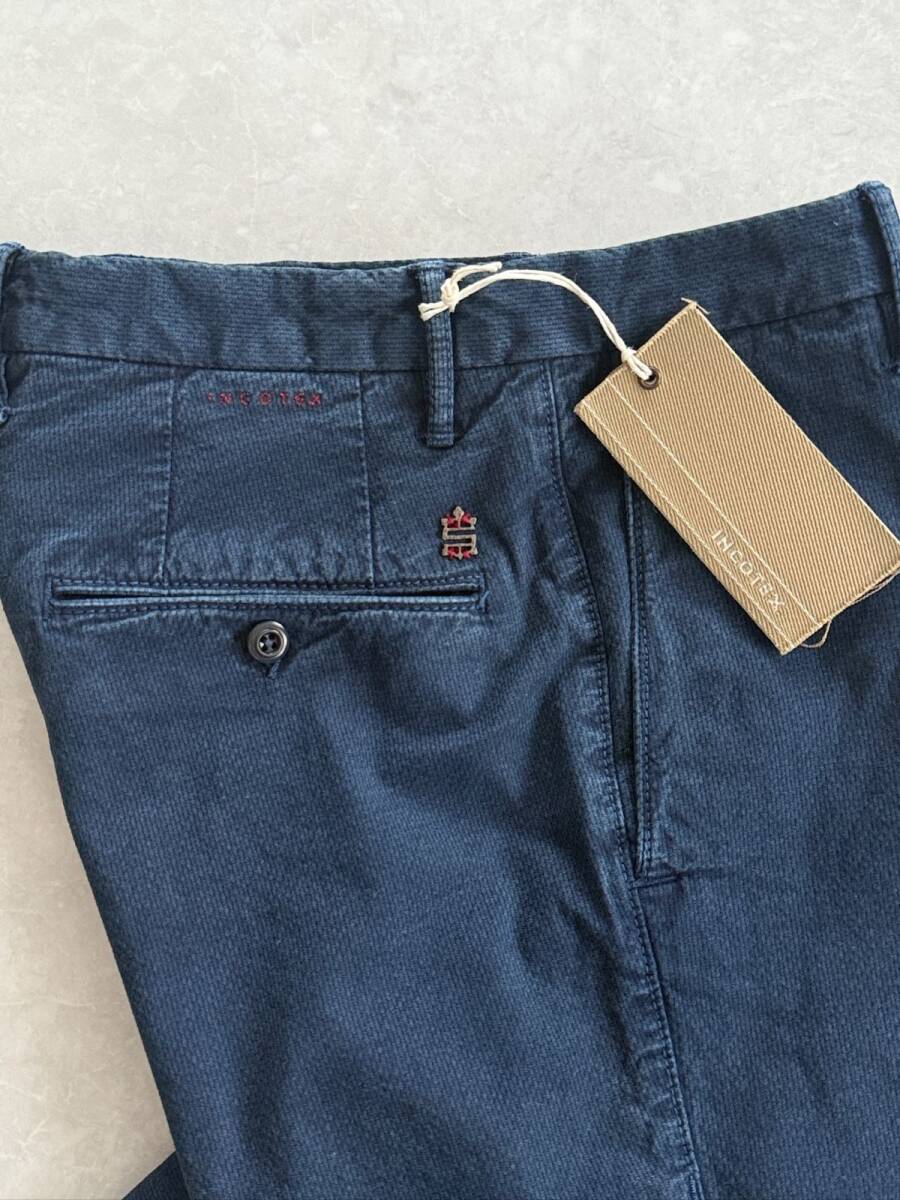 インコテックス(INCOTEX)の「SLACKS」モデルは、洗練されたシルエットと快適な穿き心地を両立させた大人のためのチノパンです。 本品はストレッチコットンを使用し、動きやすさとフィット感を確保。ウォッシュ加工によりナチュラルな色ムラが生まれ、着用するほどに味わいが増す風合いが特徴です。 素材はハニカムコットン地を採用しており、表面に立体感のある織りが生まれることで、シンプルながら上品なテクスチャーを演出。 スリムかつ美しいラインを実現するSKINFIT仕様で、脚のラインをすっきり見せながらも窮屈さを感じさせません。 カラーは落ち着いたネイビートーンで、シャツやジャケットとのドレスライクなコーディネートから、カットソーやスニーカーと合わせたカジュアルスタイルまで幅広く活躍します。 インコテックスはイタリア・ヴェネト州発のパンツ専業ブランドで、クラシックなテーラリング技術と現代的デザインを融合させ、世界中のファッション愛好家から高く評価されています。SLACKSラインは特にスリムで美しいシルエットと快適性にこだわったモデルで、日常のスタイリングに洗練された印象を加える一本としておすすめです。 ブランド:INCOTEX / インコテックス サイズ:30 素材:コットン77% ポリウレタン3% ウエスト:80cm 股上:22cm 股下:82cm わたり:29cm 裾幅:15.5cm ※実寸値となりますが誤差はご了承ください。 ※迅速なお取引を心がけさせていただいております。オークション終了より24時間以内にご連絡をいただけない場合、土日祝日を除き48時間以内にお支払い手続きをいただけない場合は、お取引の意思なしと判断させていただき取引キャンセルとさせていただきます。 万が一上記が不可の場合は事前にご連絡いただくか、入札をお控えいただきますようお願い申し上げます。 ※なるべく現物に近いお色味で撮影するよう心掛けておりますが、閲覧環境の違い等によって違いが出る場合があります。 差し替えトラブルを避ける意味でも上述した旨含め、イメージと違う等での返品は受け付けておりません。 百貨店並みのサービスを求める方や神経質な方の入札はお控えいただきますようお願い申し上げます。 |