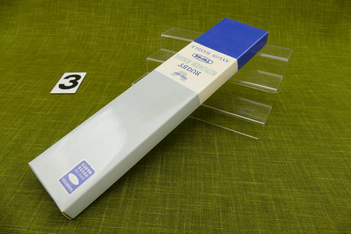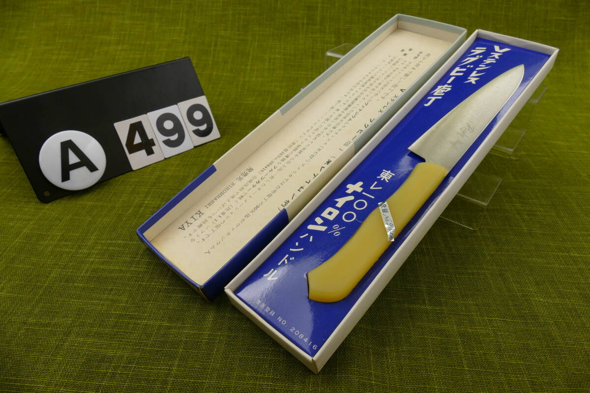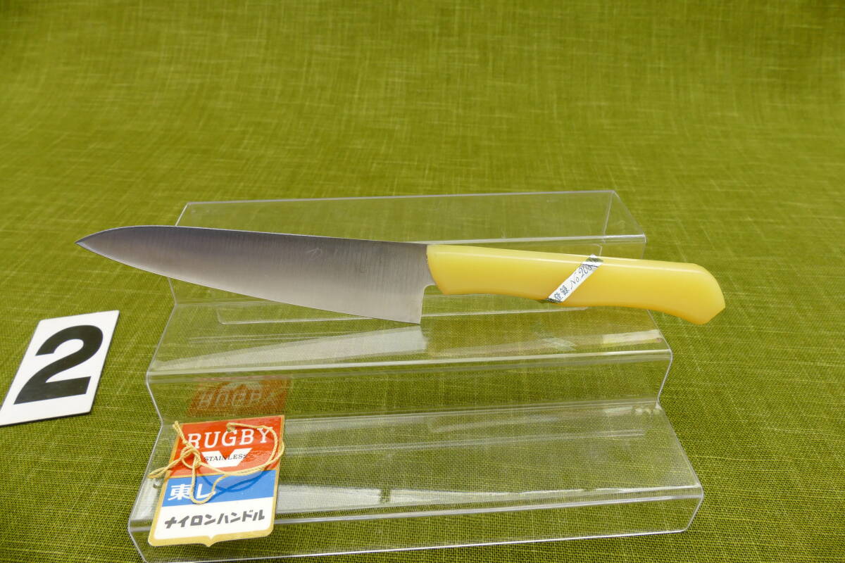 【A499】 レトロ品 日本橋 木屋 RUGBY Vステンレス ラグビー 包丁 東レ100%ナイロンハンドル 新品ですが長期保管品
