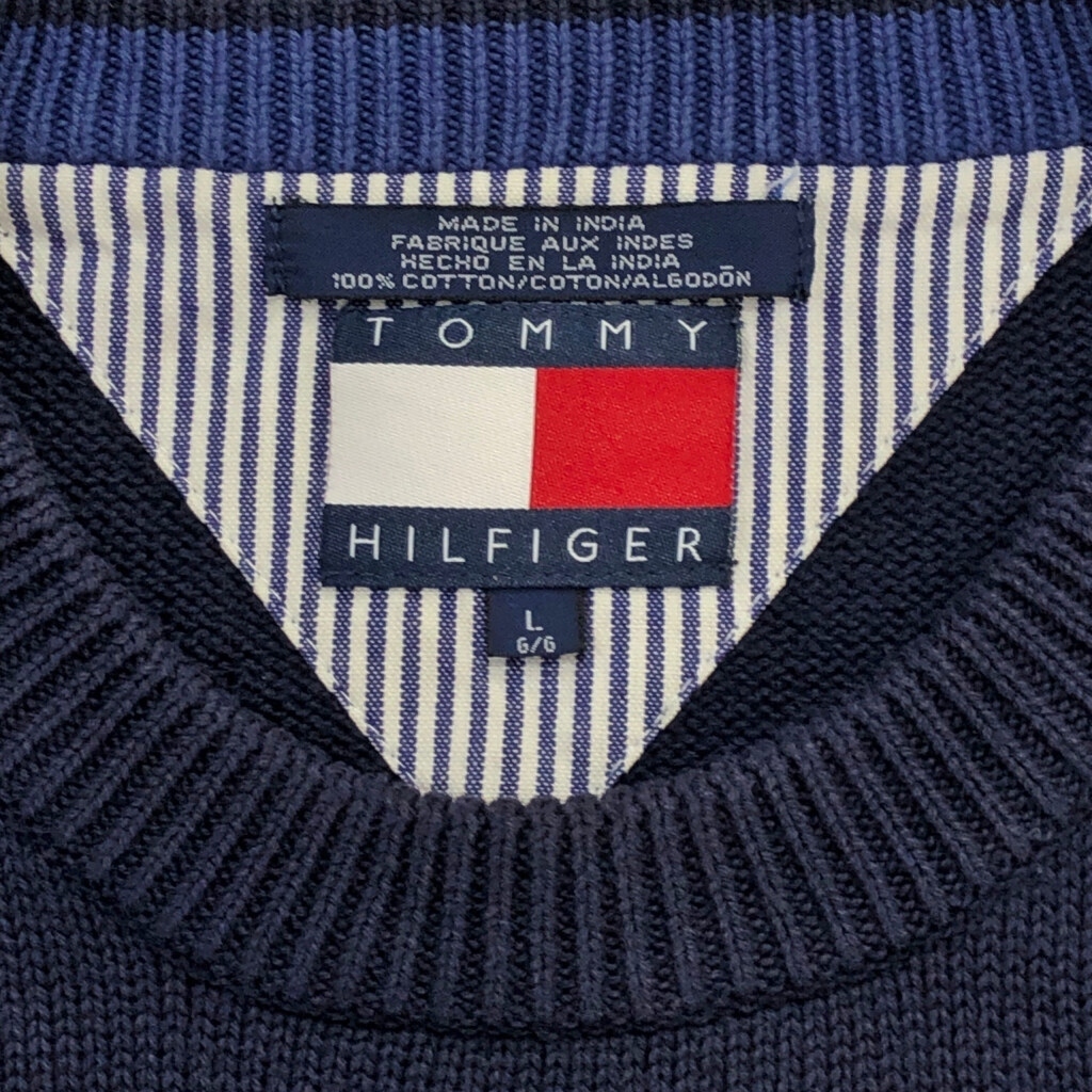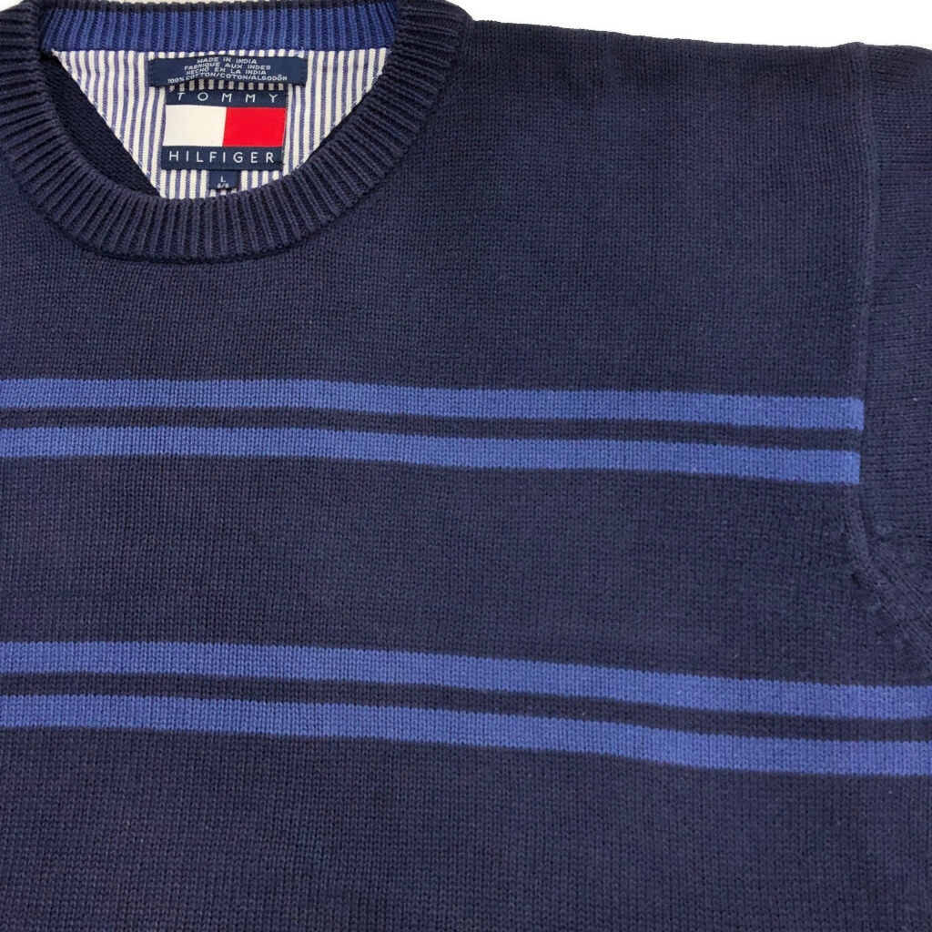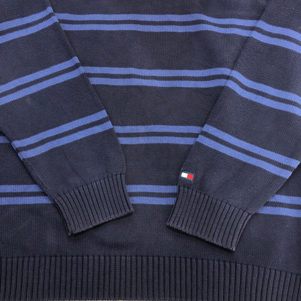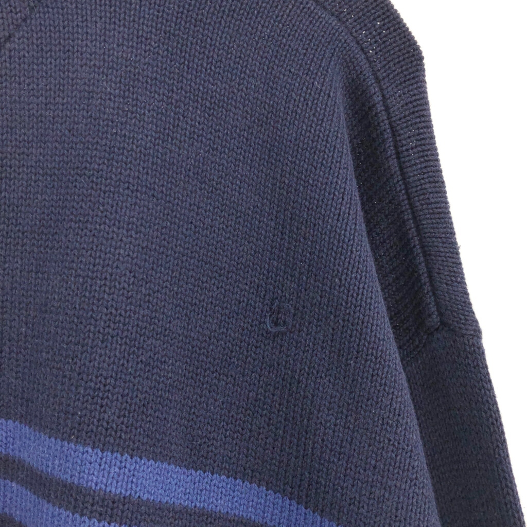 【商品管理番号】 V2363 【ブランド】 TOMMY HILFIGER/トミーヒルフィガー 【サイズ】 L 【実寸サイズ】 肩幅:約56cm 着丈:約72cm 身幅:約60cm 袖丈:約69cm 【主な素材】 表地 : コットン 【色】 ネイビー 【仕様】 ボーダー 【状態】 汚れ:袖、袖先、腹部 キズ:袖先 特記事項:糸ほつれ |