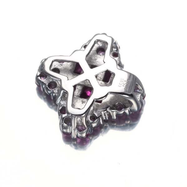 レディッシュピンクの艶やかな輝きを放つルビーを丁寧なミステリーセッティングに。ピンクサファイアを飾り、装いを美しく彩るペンダントトップです。 |
