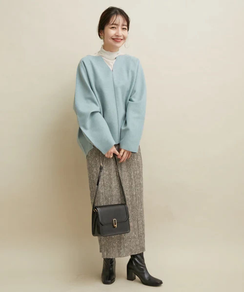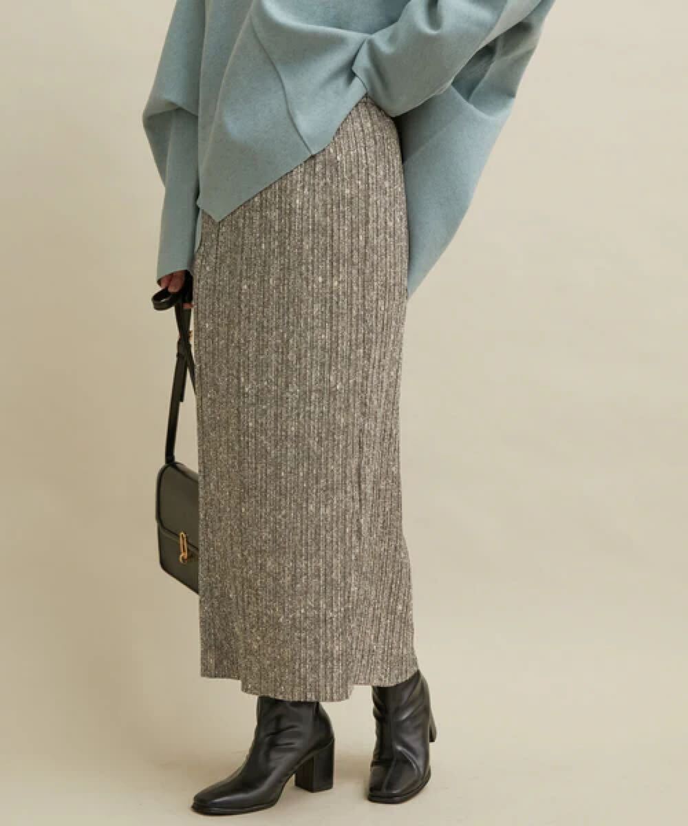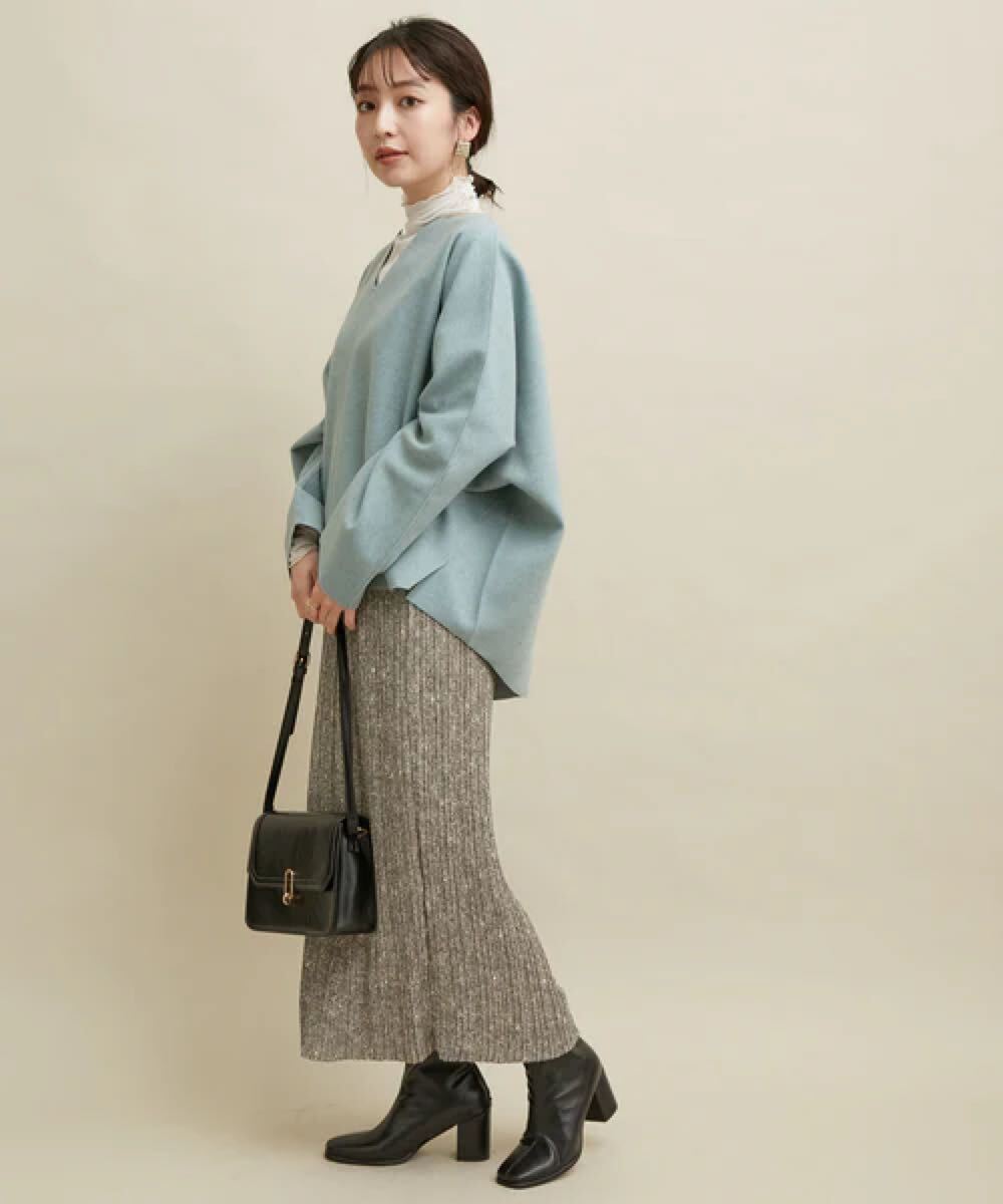 冬にはゆったりニットと合わせて女性らしく合わせるのも◎です。