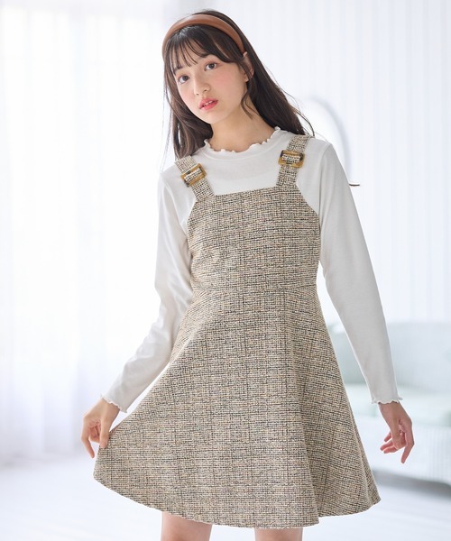 参考商品名:テレコカットソー×ツイードドッキングワンピース(130cm~160cm)