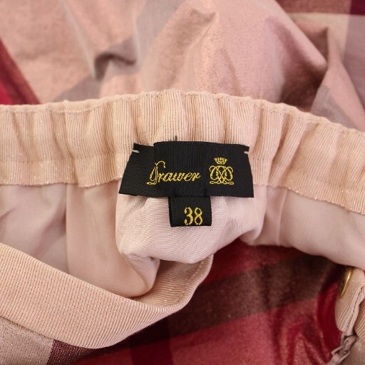 ドゥロワー Drawer 美品 23AW チェックスカート フレア ミモレ ロング ラメ 38 ピンク 6524-299-1767 /BB レディース