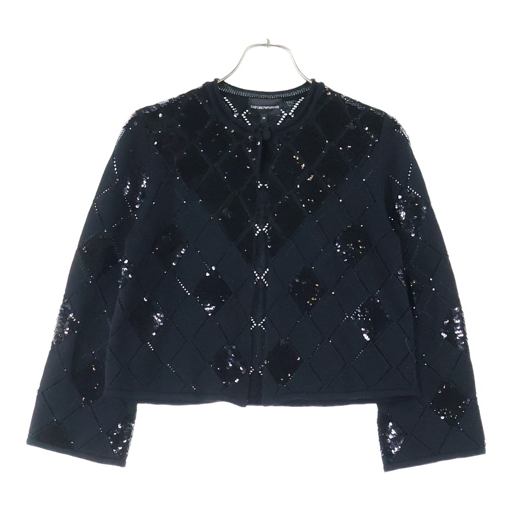 EMPORIO ARMANI エンポリオアルマーニ スパンコール装飾 ウール レディース カーディガン ブラック 6K2MTY 2M21Z