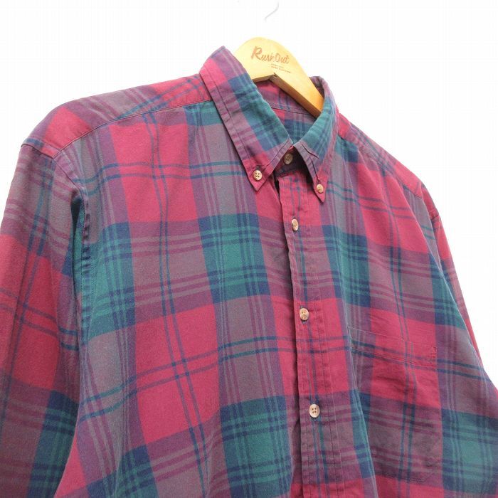 【商品名】 L★古着 ブルックスブラザーズ 長袖 ブランド シャツ メンズ コットン ボタンダウン エンジ他 チェック