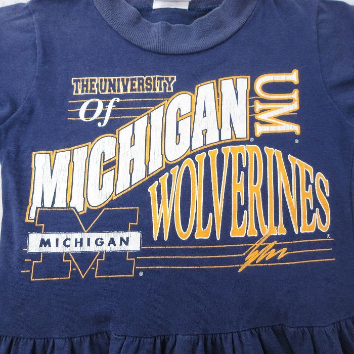 【商品名】 古着 長袖 ワンピース キッズ ガールズ 子供服 80年代 80s ミシガンウルヴァリンズ 大学 コットン クルーネック USA製 紺【spe】