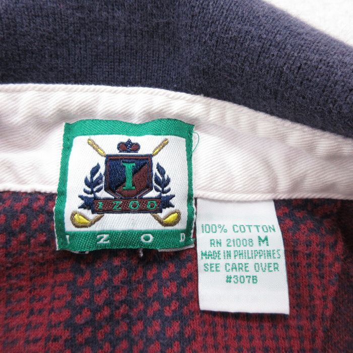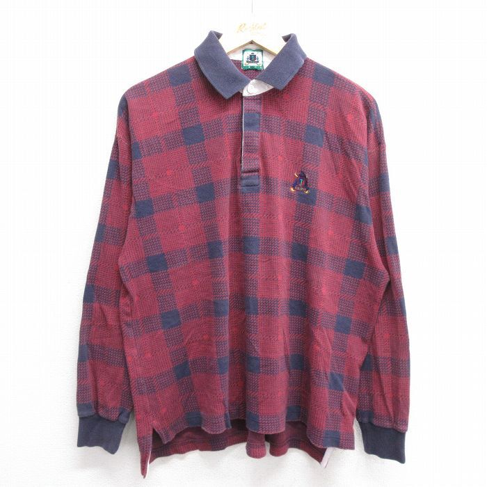 【商品名】 XL★古着 IZOD 長袖 ブランド ラガー シャツ メンズ ワンポイントロゴ コットン エンジ他