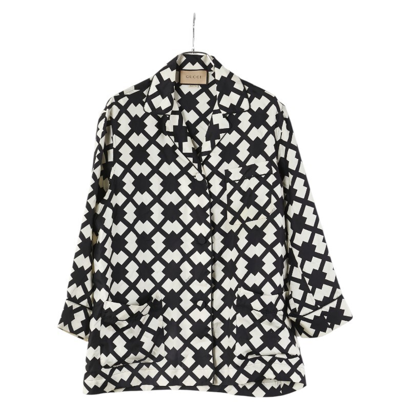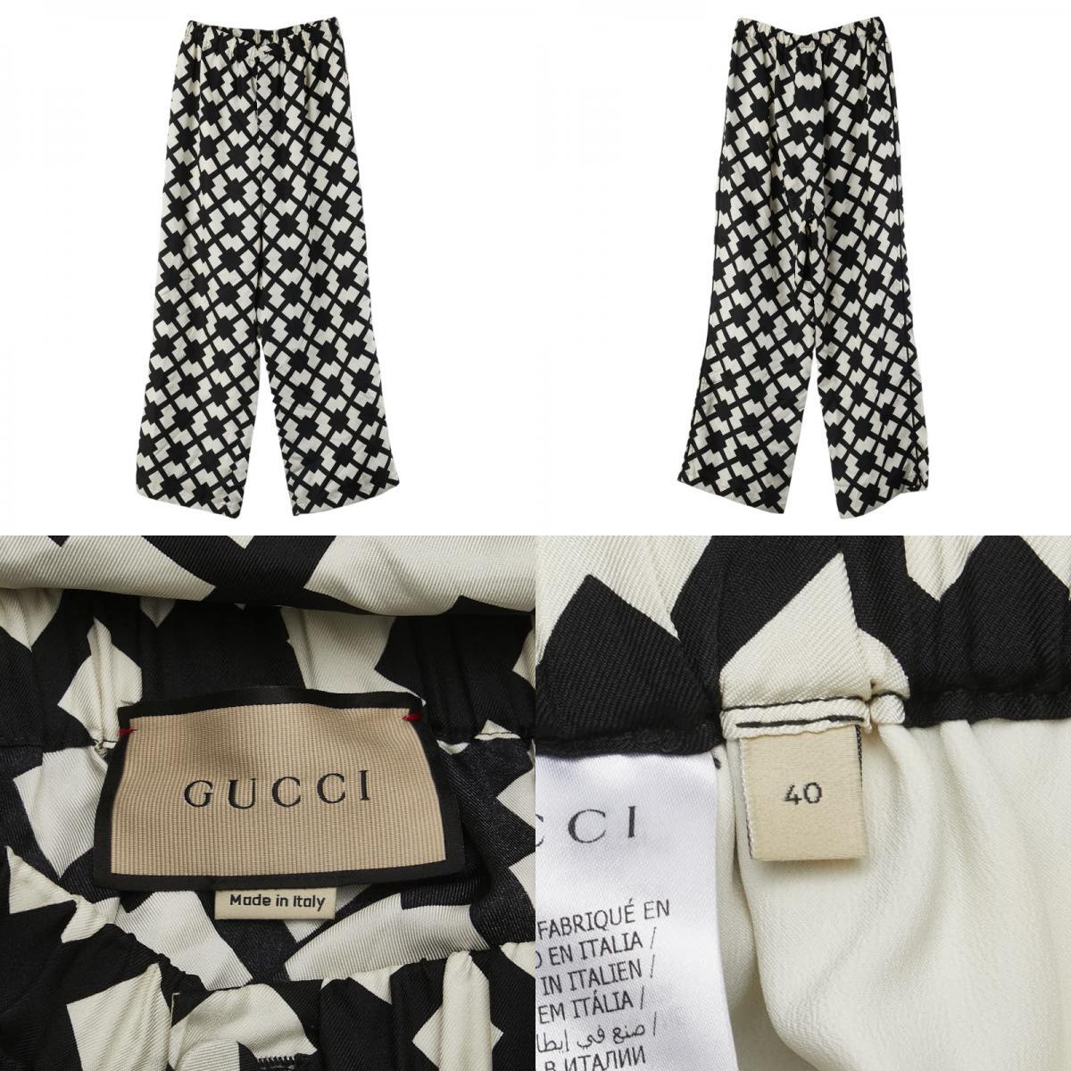グッチ パジャマ セットアップ サイズ:40 ホワイト ブラック シルク レディース GUCCI 【中古】