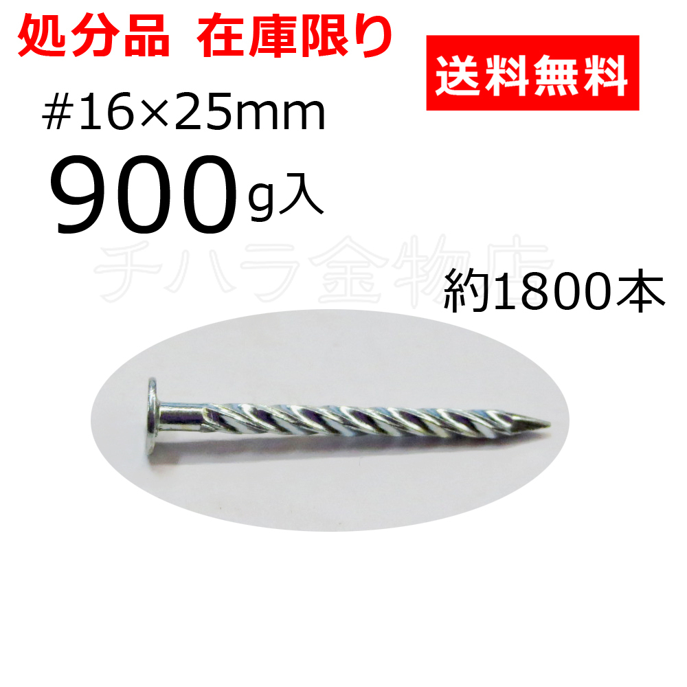 処分品 スクリュー釘 #16×25mm 900g入(約1800本)平頭 ユニクロメッキ クリックポスト発送