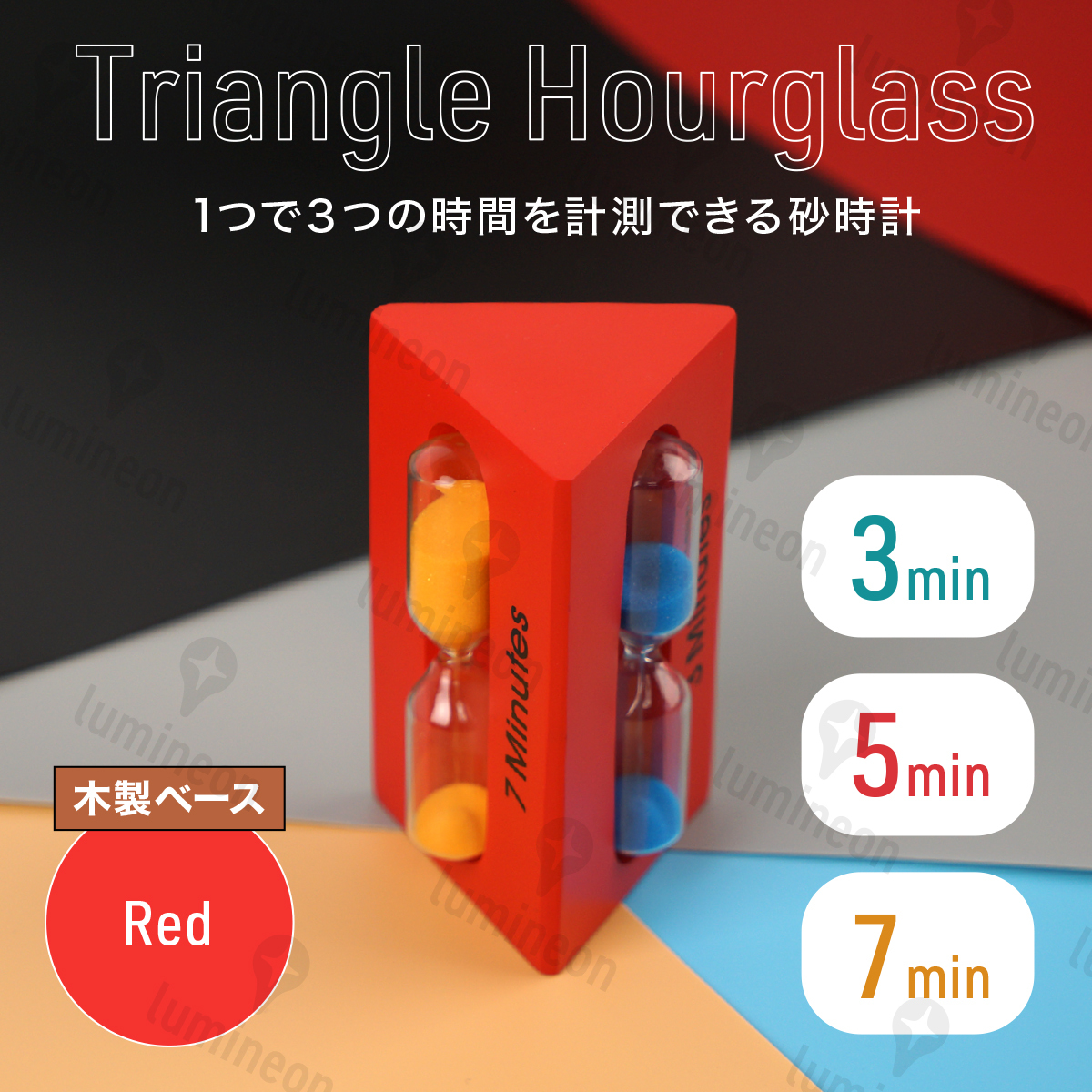 砂時計 3分 5分 7分 レッド 赤 木製 ガラス インテリア おしゃれ 置物 高級 長時間 子供 向け サンド タイマー プレゼント g064ac 2