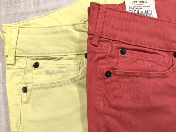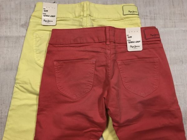訳あり新品 ぺぺジーンズ Pepe Jeans レトロ Y2K ハーフ サブリナパンツ 色違い 2点セット キッズ レディースも◎ 綿混 14 黄色/コーラル です。