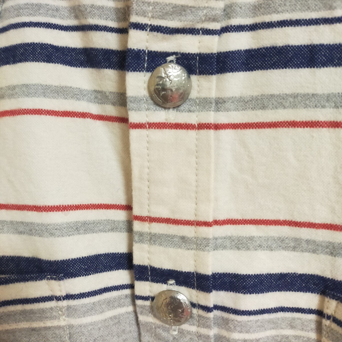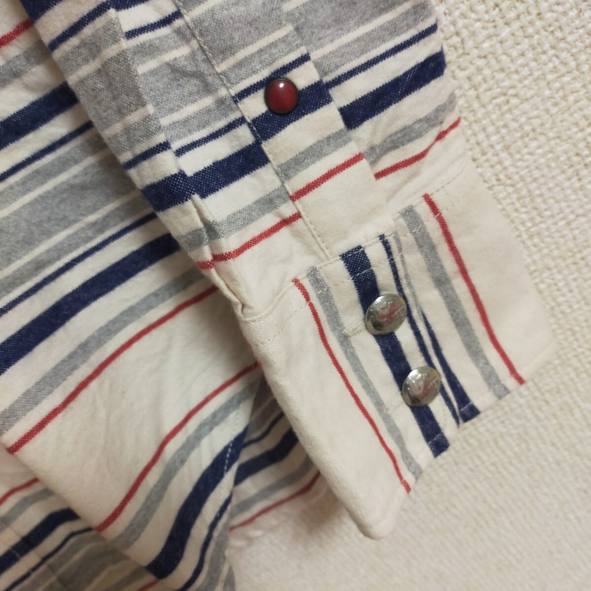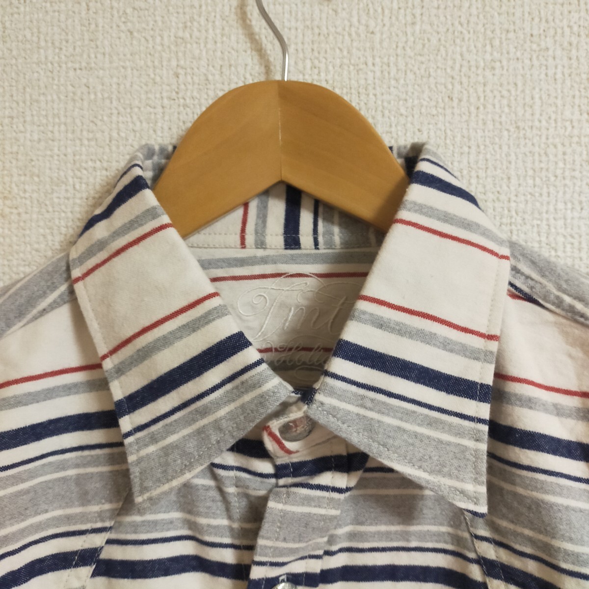 | TMT ティーエムティー TSH-F15SP21 ボーダー ウエスタンシャツ 長袖 コンチョボタン M アイボリーホワイト | |