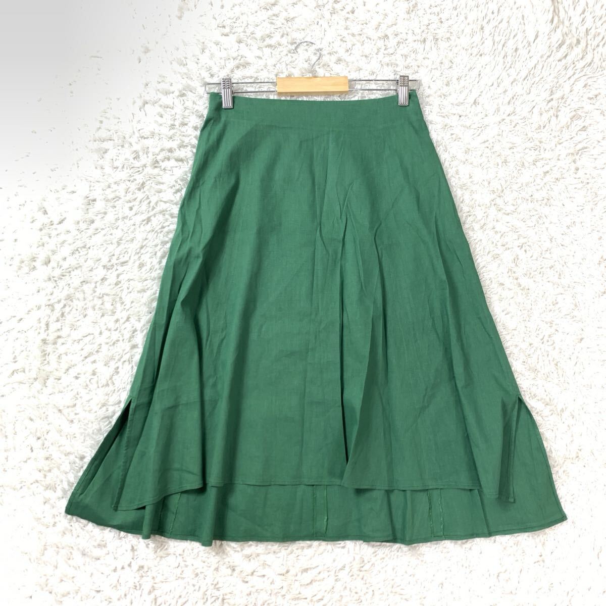 theory luxe セオリーリュクス ロングスカート リネン 麻 スリット レーヨン 緑 グリーン 38 YA162
