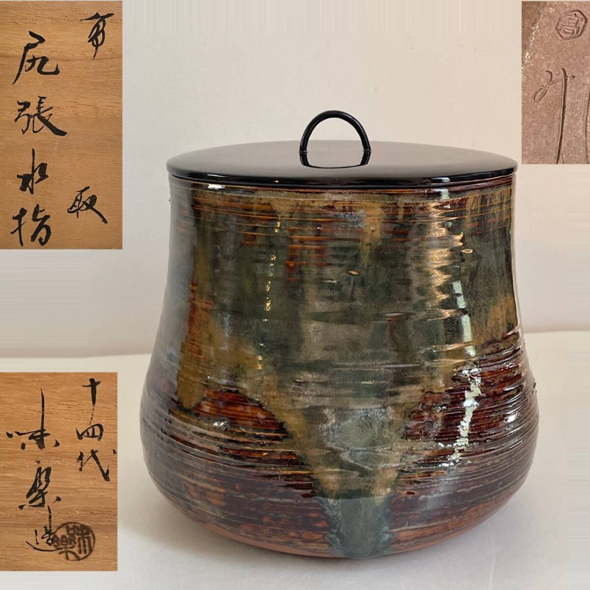 【和味】十四代 亀井味楽造 高取 尾張 水指 共箱 茶道具 本物保証 90