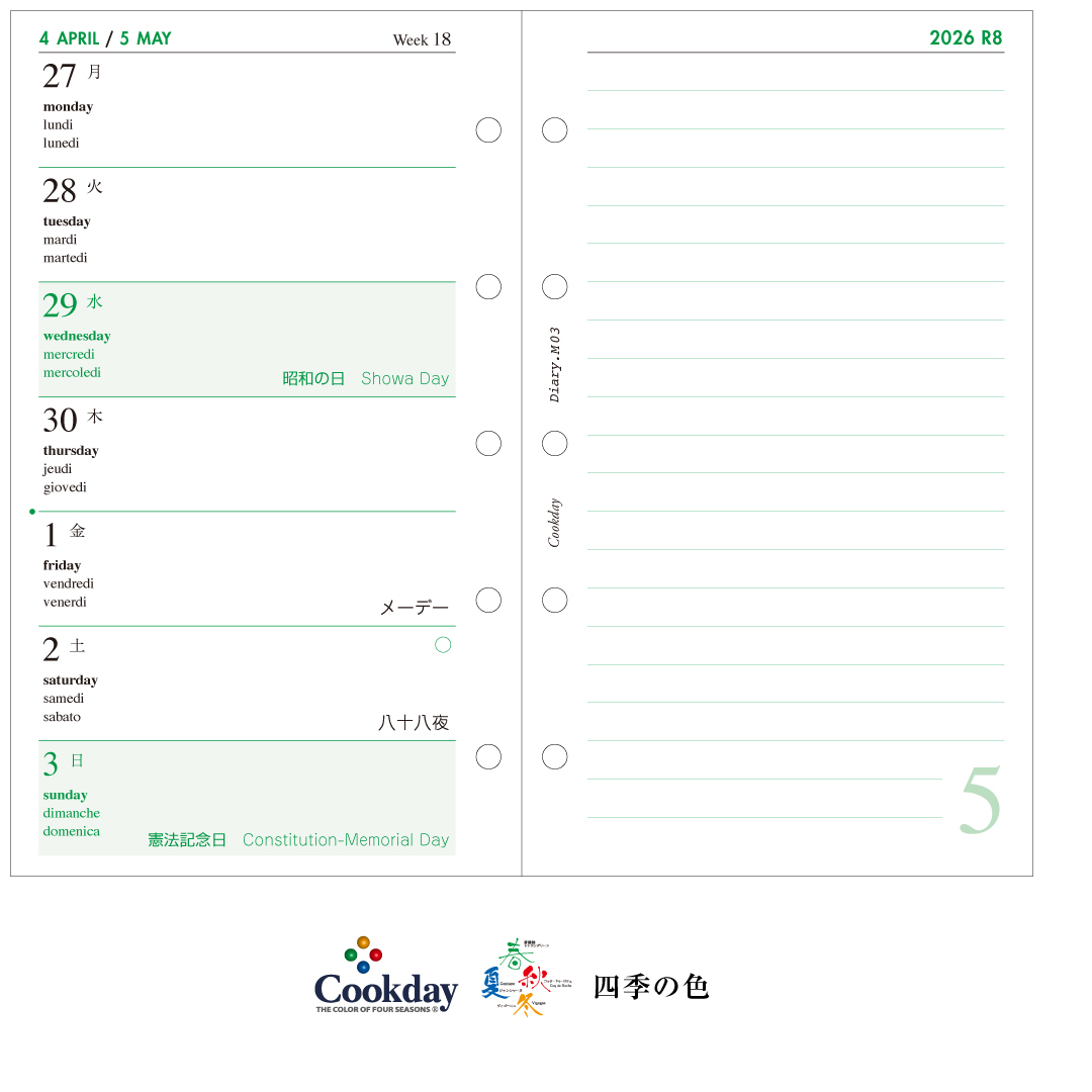 メーカーサイト » ミニ5サイズ 1週間1ページ対向ノートページ M03