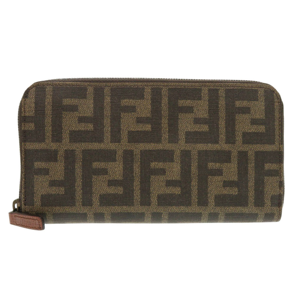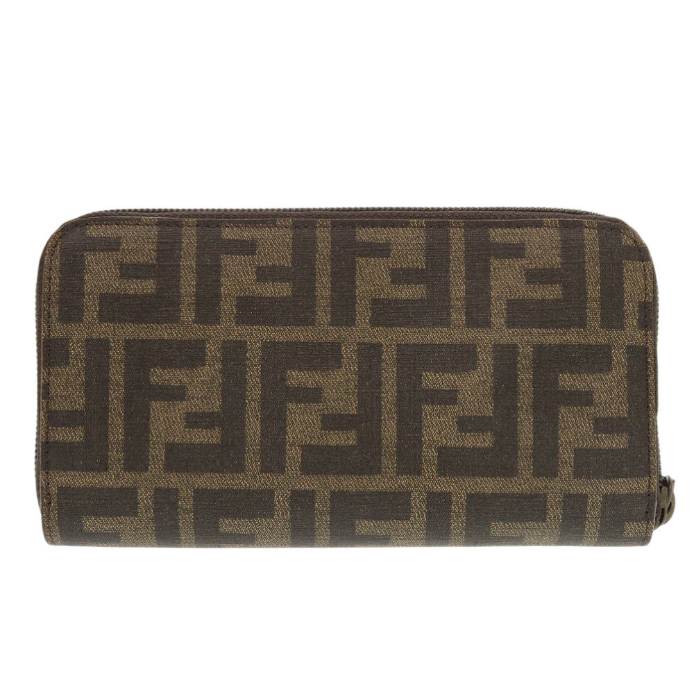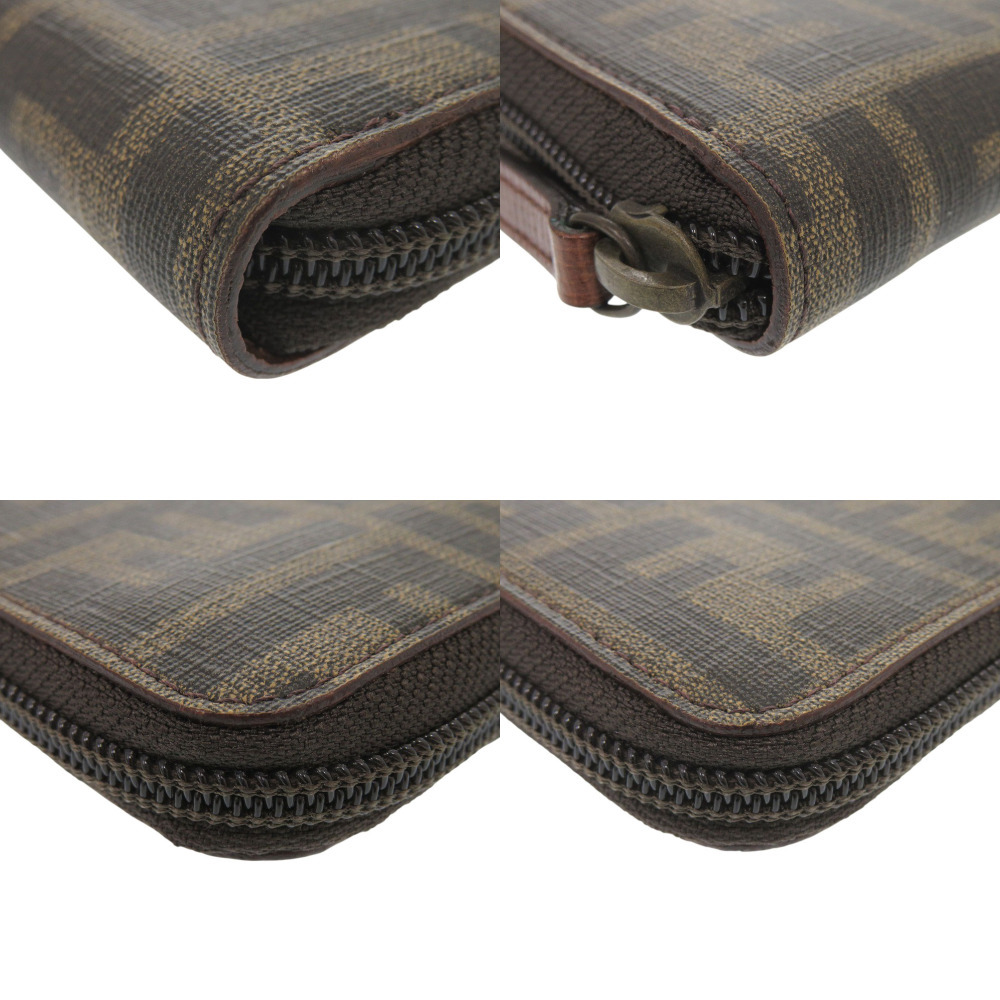 新品同様 フェンディ ズッカ柄 8M0024 ラウンドファスナー PVC ブラウン 長財布 1133 FENDI