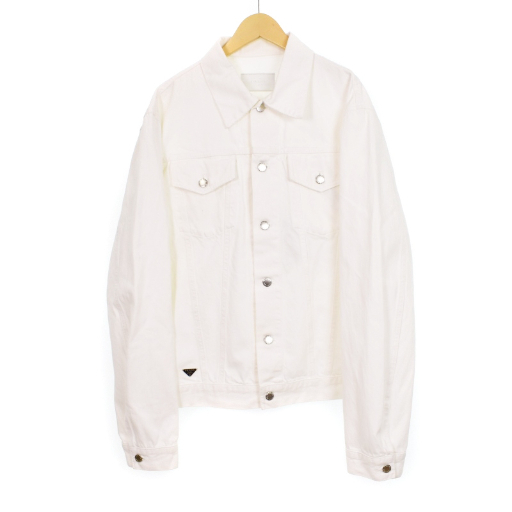 プラダ PRADA 23SS コットン デニムジャケット Gジャン トライアングルロゴ XXXL 白 ホワイト GEB227 メンズ
