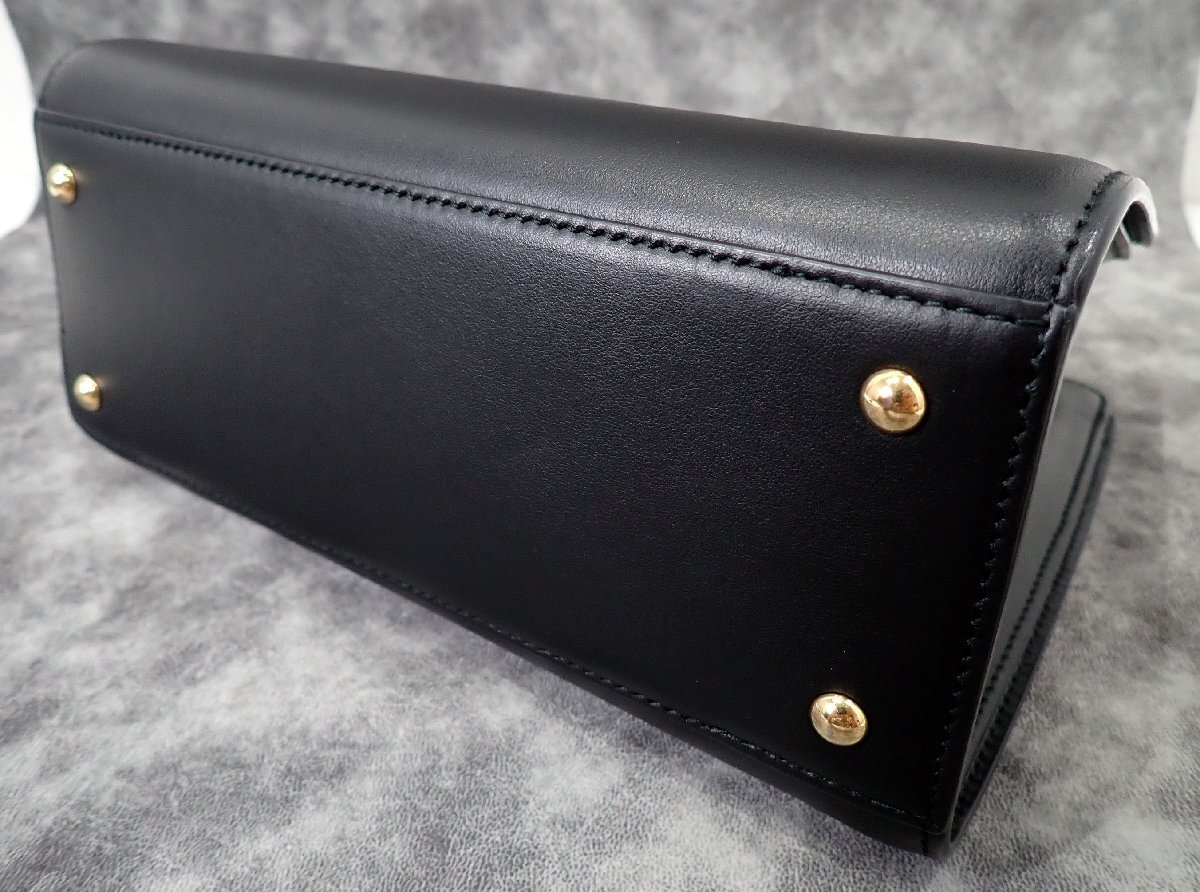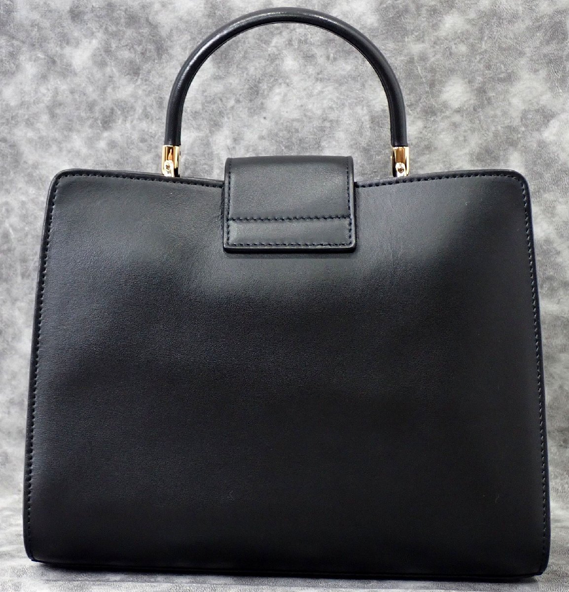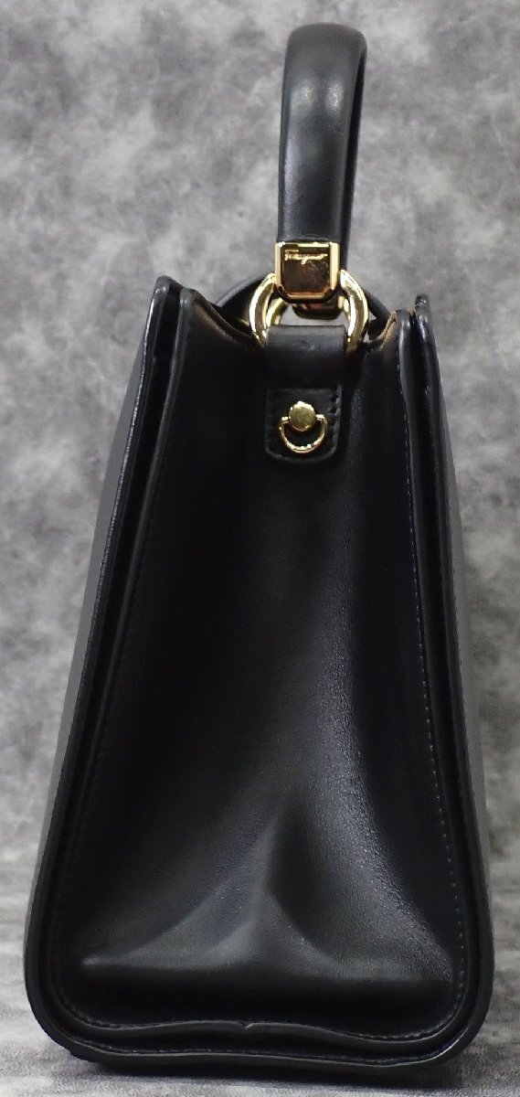 極美品 フェラガモ トップハンドル ケリー型 ガンチーニ レザー 2WAY ショルダーバッグ ハンドバッグ ブラック ゴールド金具 ガンチョ 2041