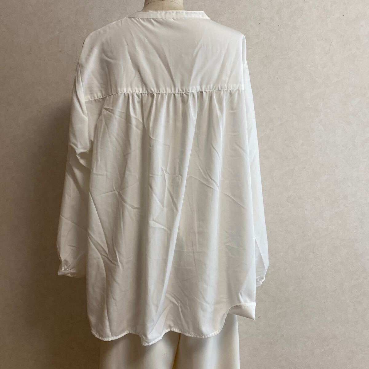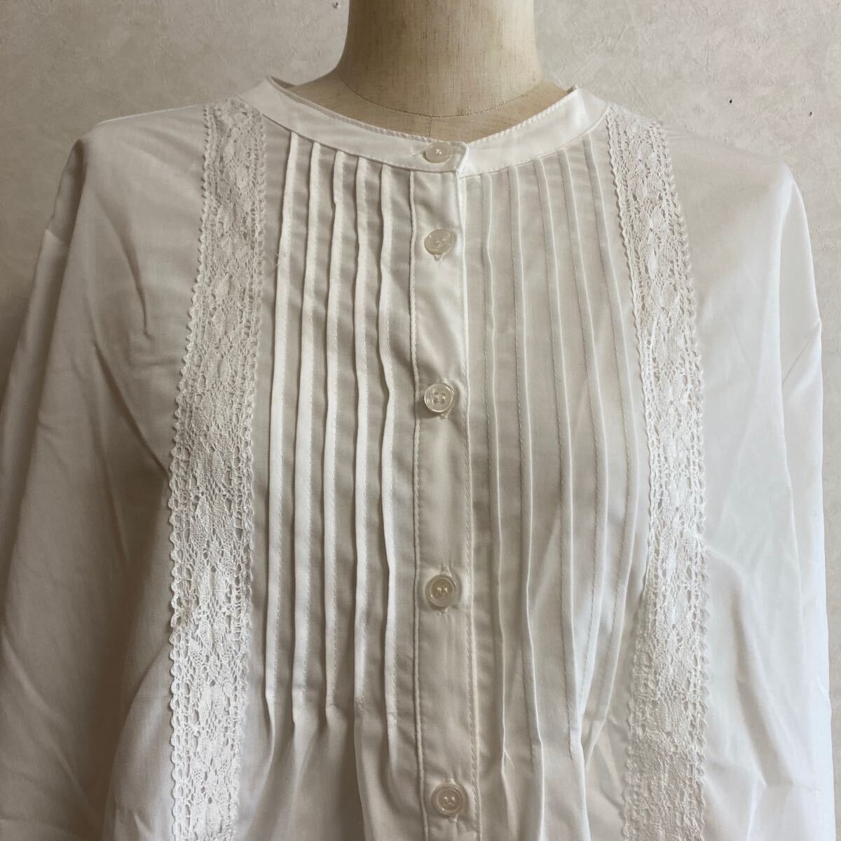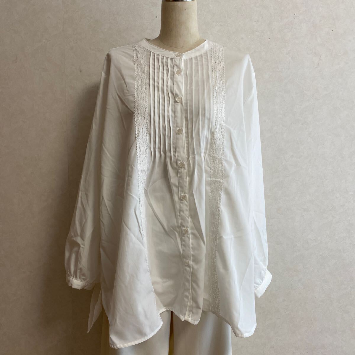KN 2370*4L 大きいサイズ ピンタック華やかレースシャツ、チュニック オフ白
