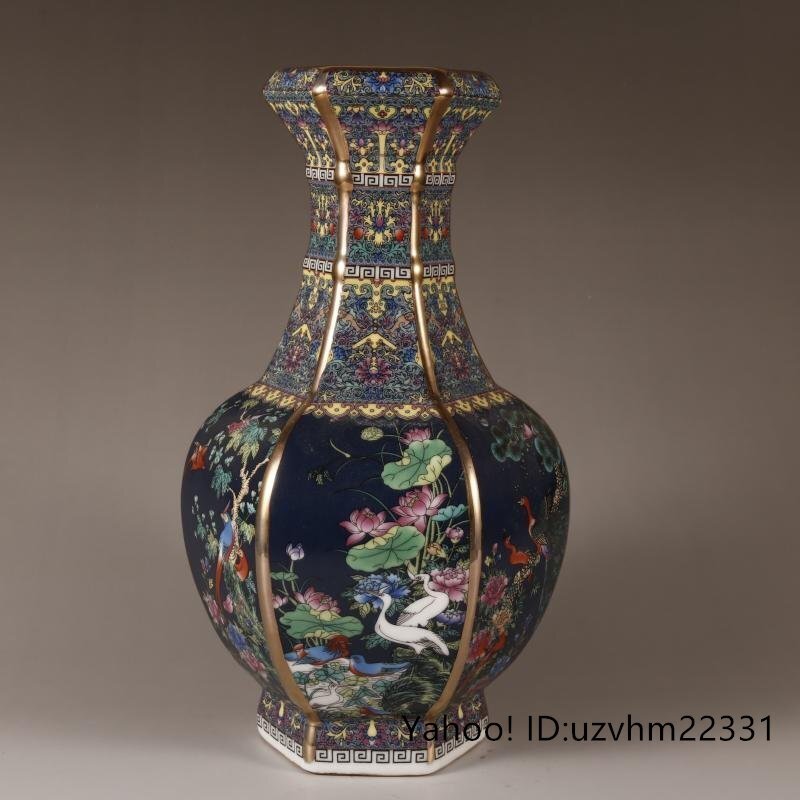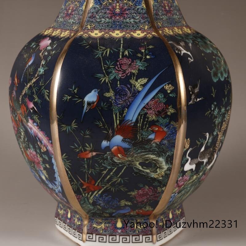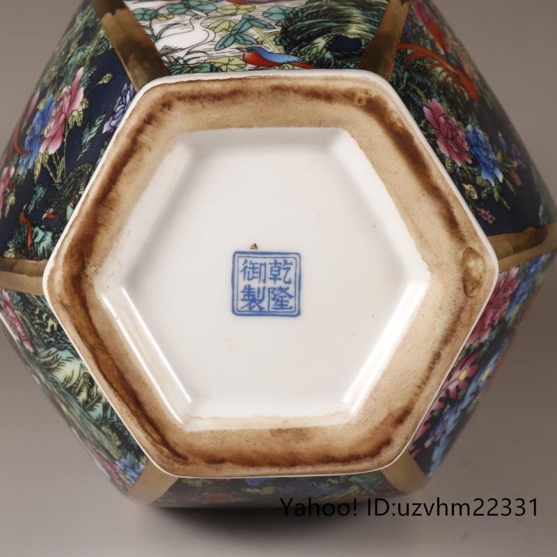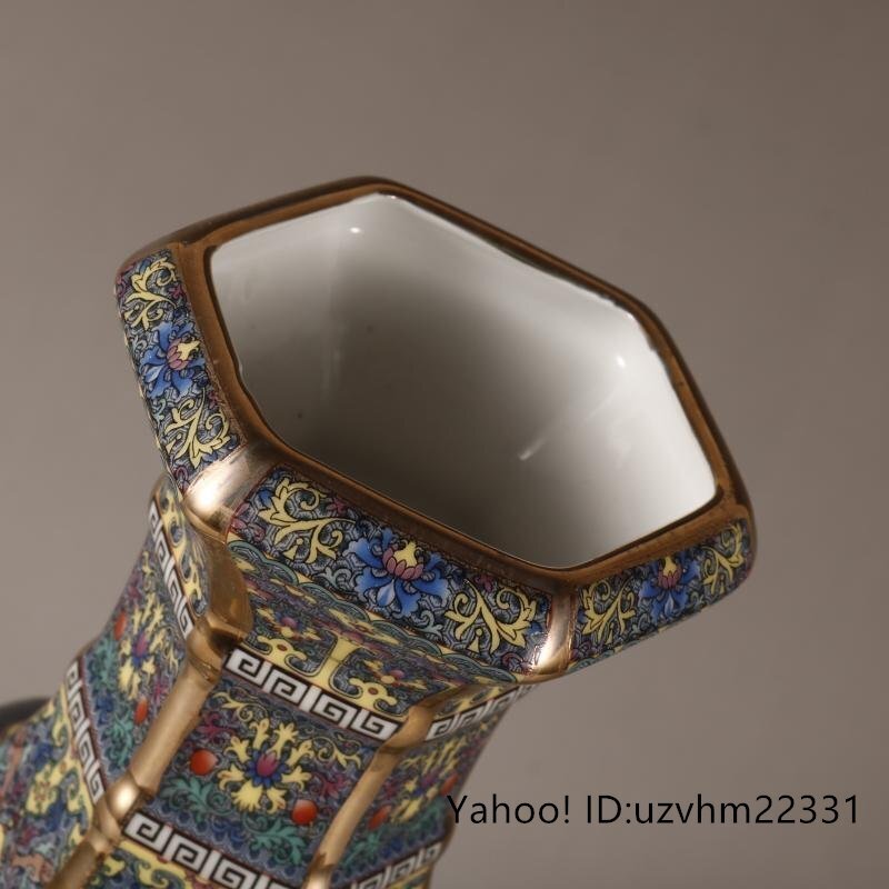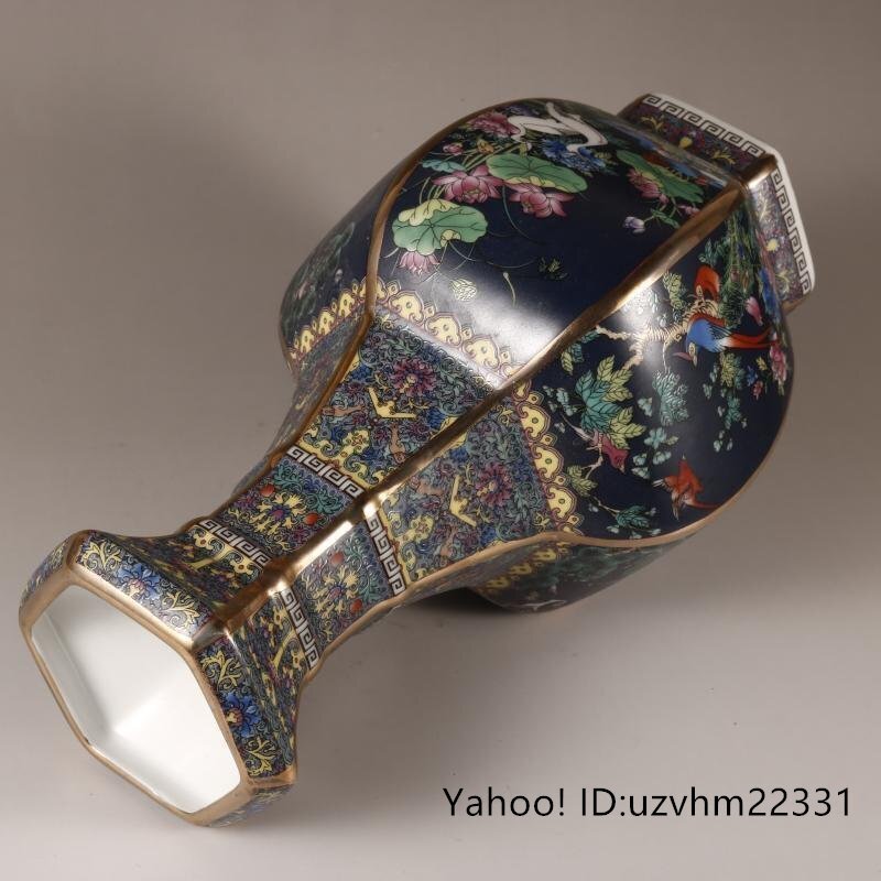 景徳鎮 六方花瓶 花鳥花瓶 琺瑯彩 粉彩 磁器 置物 装飾 収蔵 コレクション