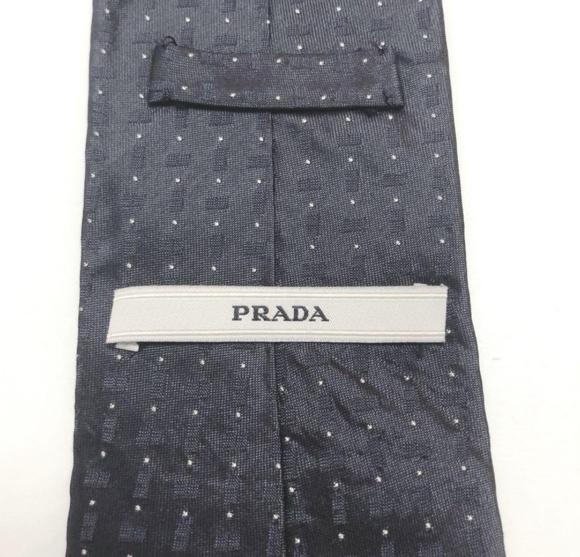 プラダ/PRADA ネクタイ(刺繍 ドット柄 パターンネイビーホワイト)【中古】