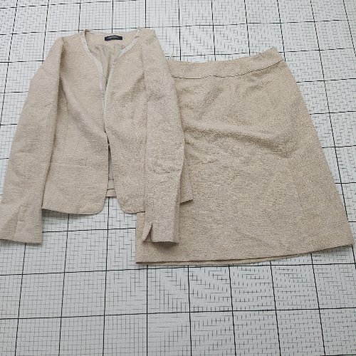◇ Θ NEWYORKER ニューヨーカー 入学式用 膝丈 - 長袖ジャケット 膝丈スカート サイズ9 ベージュ系 レディース E
