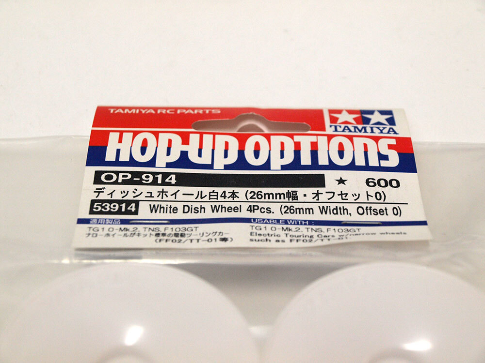 【M1805】タミヤ OP-914 ディッシュ ホイール白4本(26mm幅・オフセット0)新品(53914 RC ラジコン TG10-MK.2 TNS F103GT FF02)