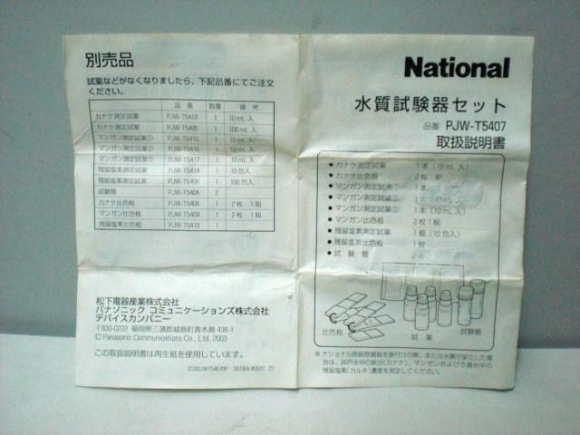 National ナショナル 水質試験器キット カナケ・マンガン・残留塩素 PJW-T5407 (1262)
