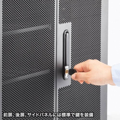 ※配送の送り主はサンワサプライ(株)と記載されています。沖縄・離島配送不可となります。 当店は正規販売代理店です。 特長 ハブやHDDなどの小型機器の収納に最適です。 前扉、後扉、サイドパネルには標準で鍵を装備しています。セキュリティ対策が可能です。 前扉・後扉にはメッシュパネルを採用しているため、放熱性に優れています。 棚板2枚が標準装備です。 19インチマウントフレームはEIA規格ユニバーサルピッチを採用し、ケージナットに対応しています。 ※19インチマウントフレームは前方のみ。 気をつけておりますが、タイミングによっては在庫切れの場合があります。 仕様