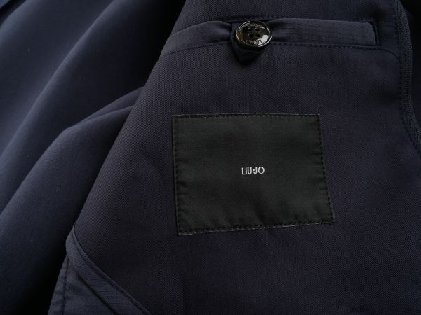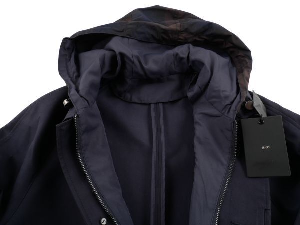 【新品未使用】LIU JO UOMO◆Italy◆M(48)◆ネイビー ステンカラー アウター コットン コート◆取り外しインナーフード