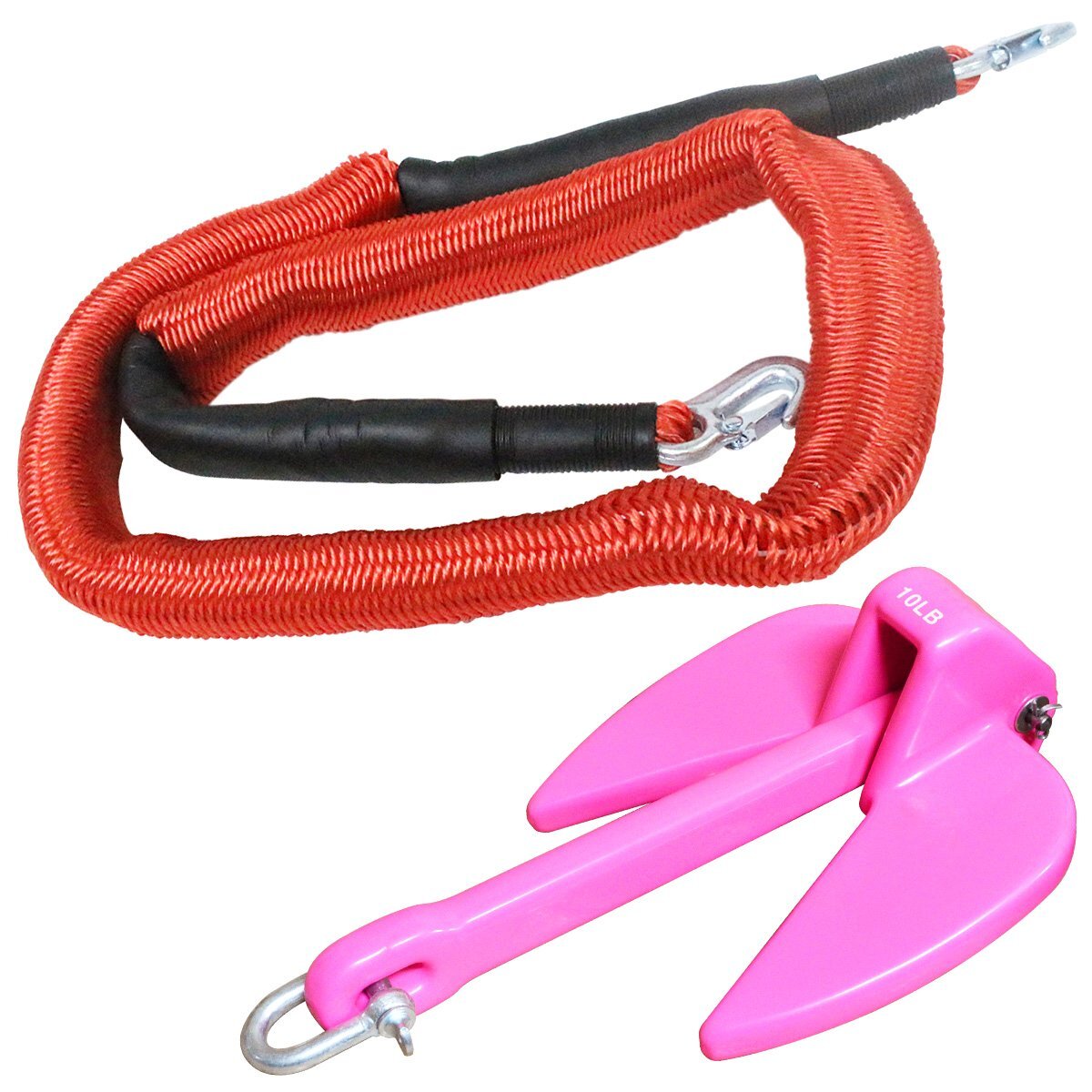 【送料無料】『伸縮ロープ/アンカーセット』爪型 アンカー 10LBS 4.5kg ピンク 6M フロート のびのび アンカー ロープ 赤