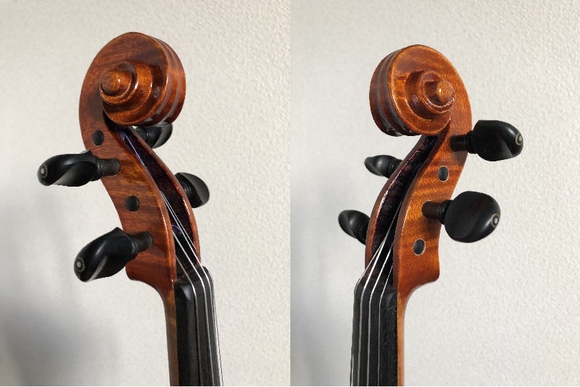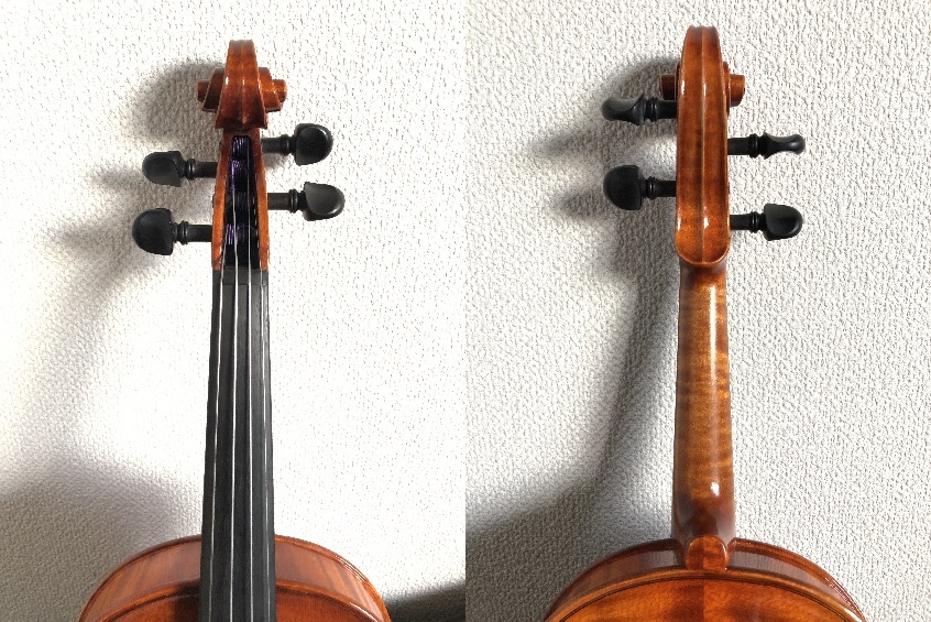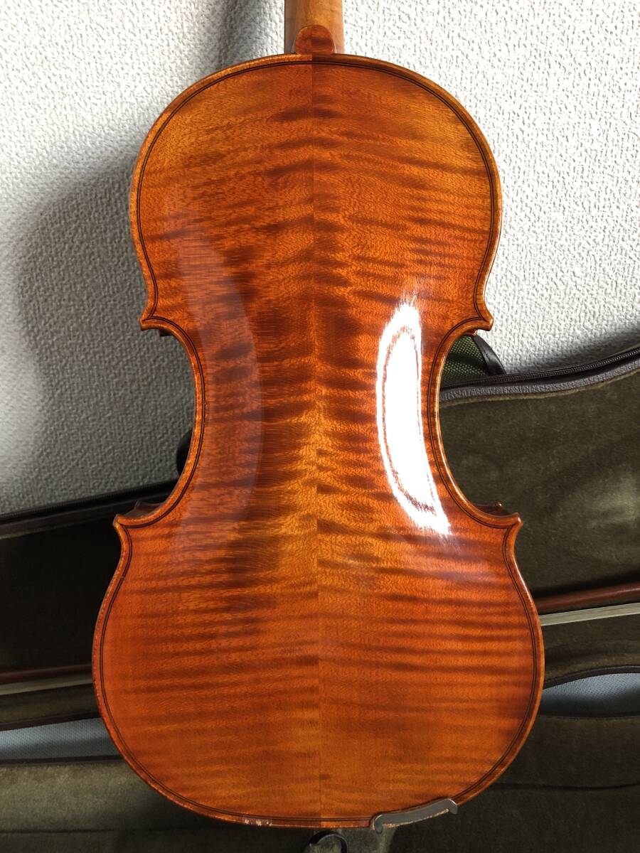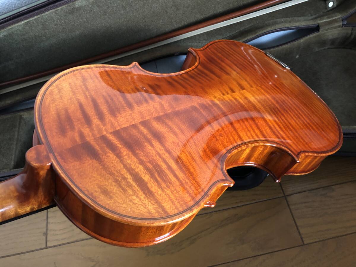 杢目が大変美しい良質な木材に、艶やかで明るい色調の美しいニスが使用されているうえ、ほとんど輝きを失うことなく艶やか状態を保っており、大変美しいヴァイオリンだと思います。