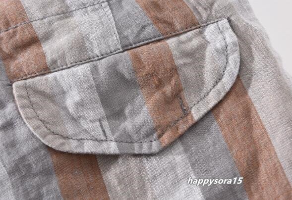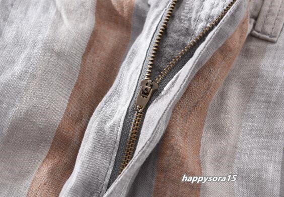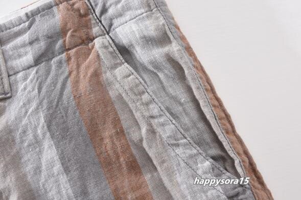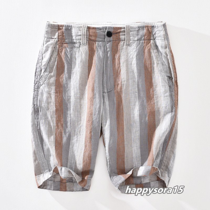 ショートパンツ メンズ ハーフパンツ  ショーツ  リネンパンツ 綿麻 短パン ボトムス ストライプ柄 夏服 着心地抜群 グレー 33