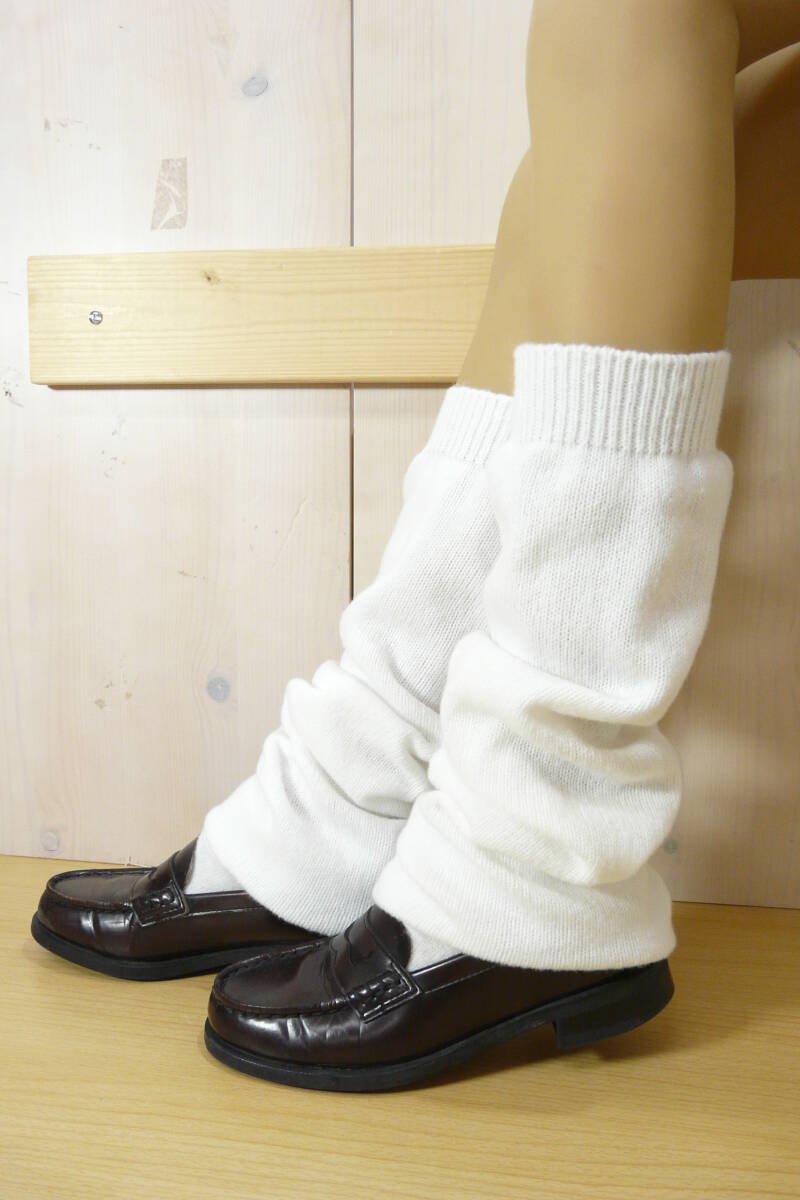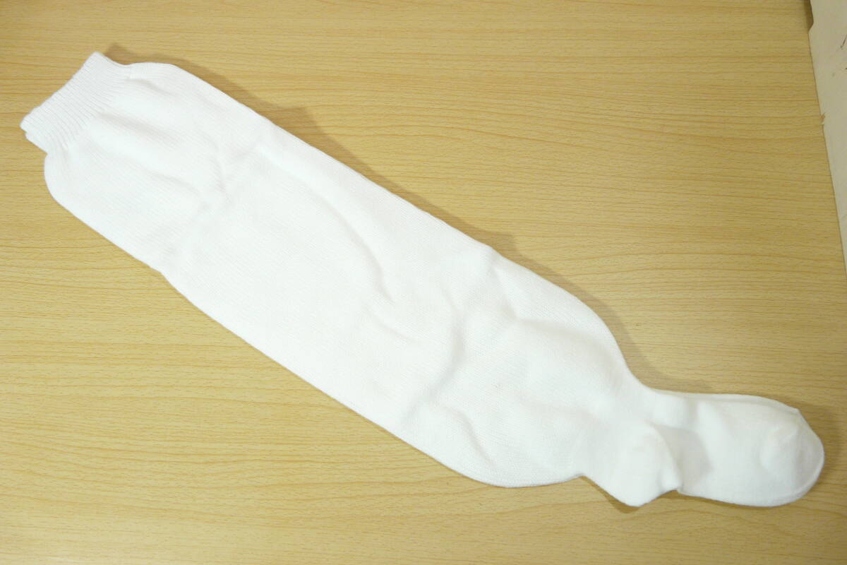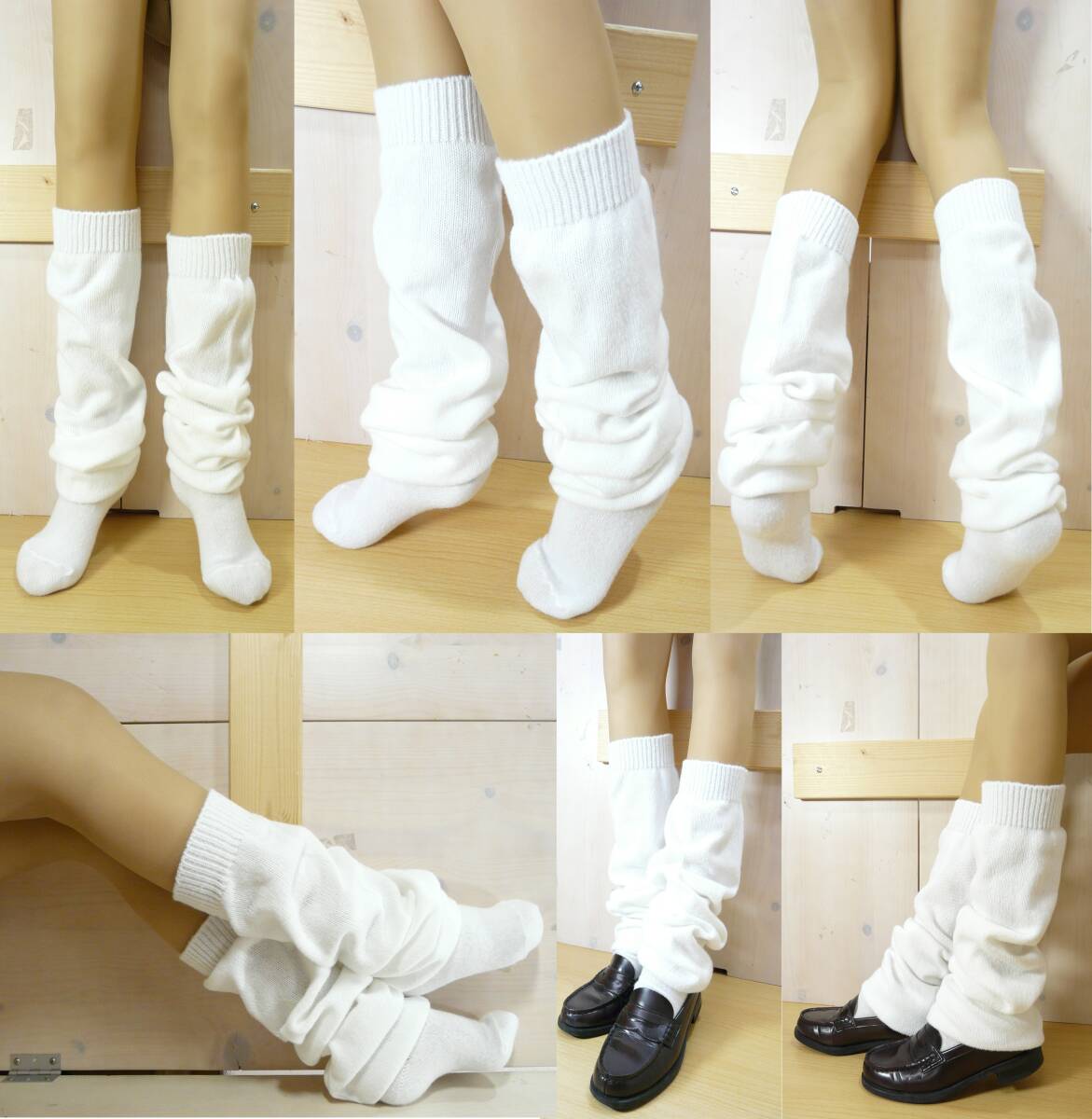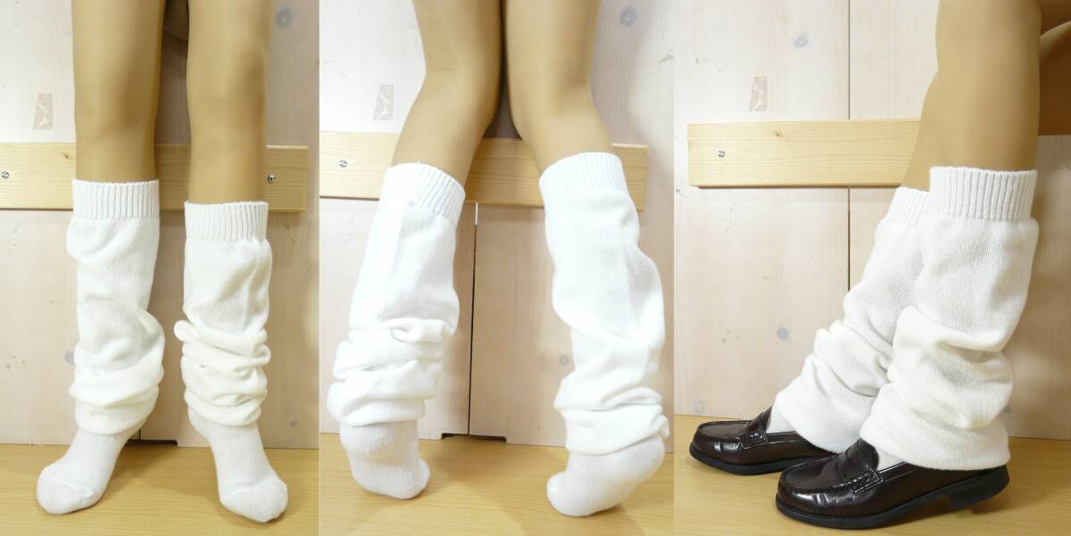 【カラー/デザイン】 ・ホワイト ・平編み ・ゴム抜き ・ルーズソックス(ひざ下丈) ・60cm丈 ・16cm幅 ・くちゴムバンドあり ※写真にてご確認ください。