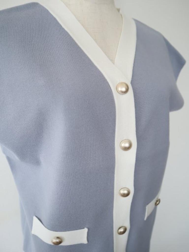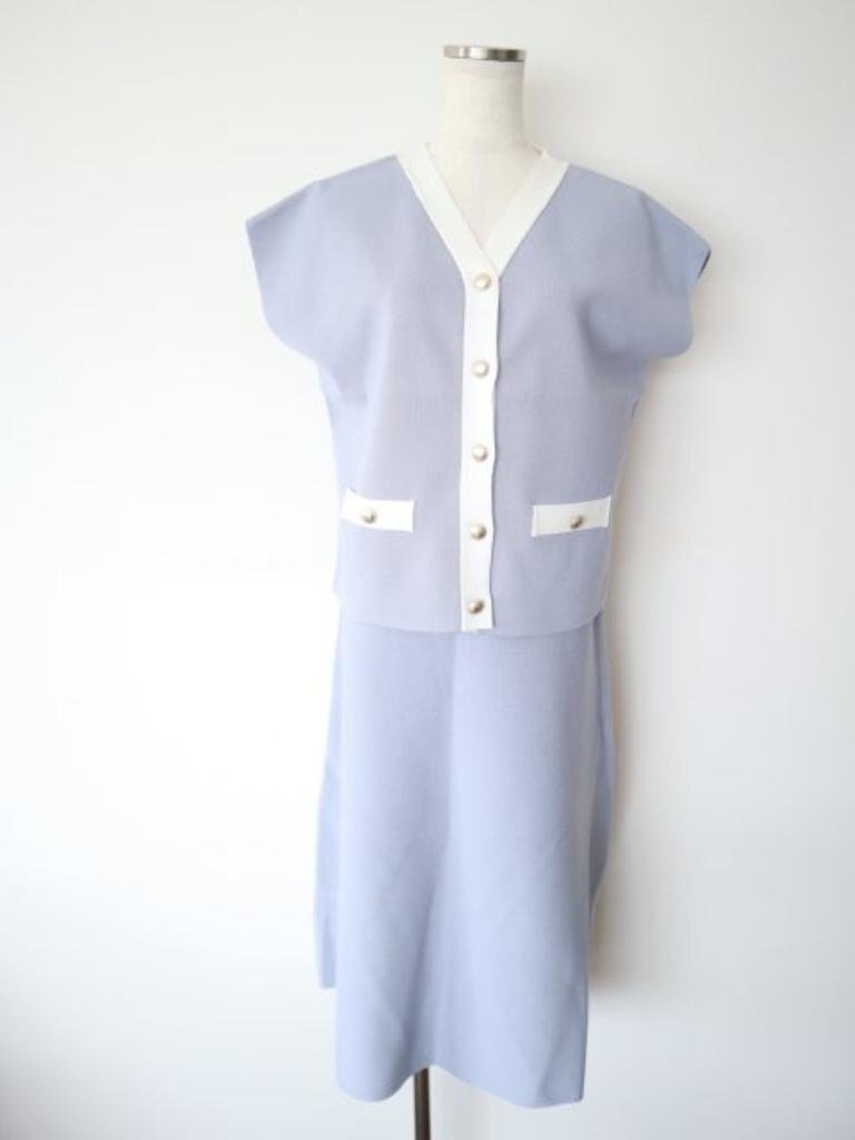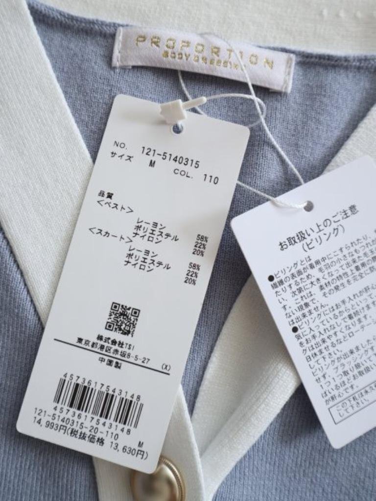 新品タグ付き【送料込】PROPORTION BODY DRESSING ニットベストセットアップ Mサイズ くすみブルー×オフホワイト 綺麗め 6458535
