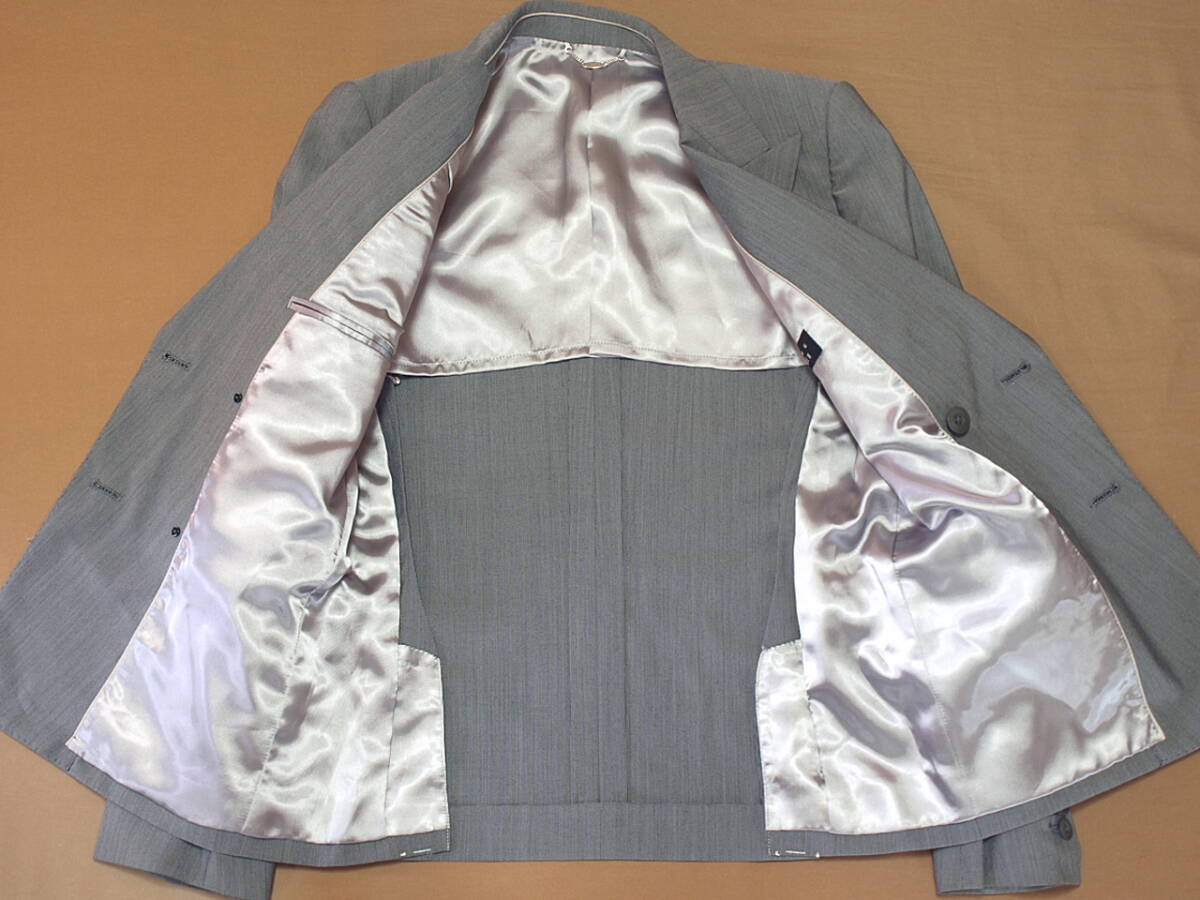 ブレザーは背中裏地の無い、背抜きのサイドベンツとなります。