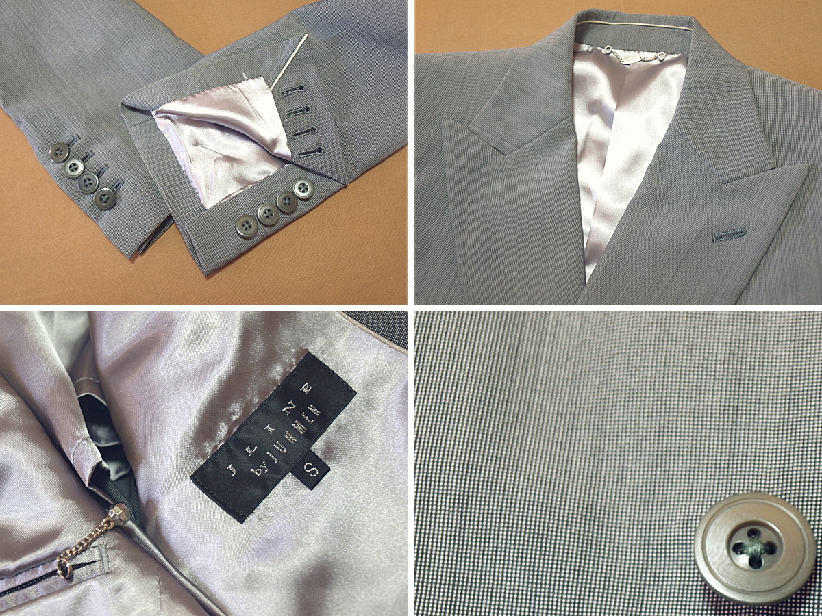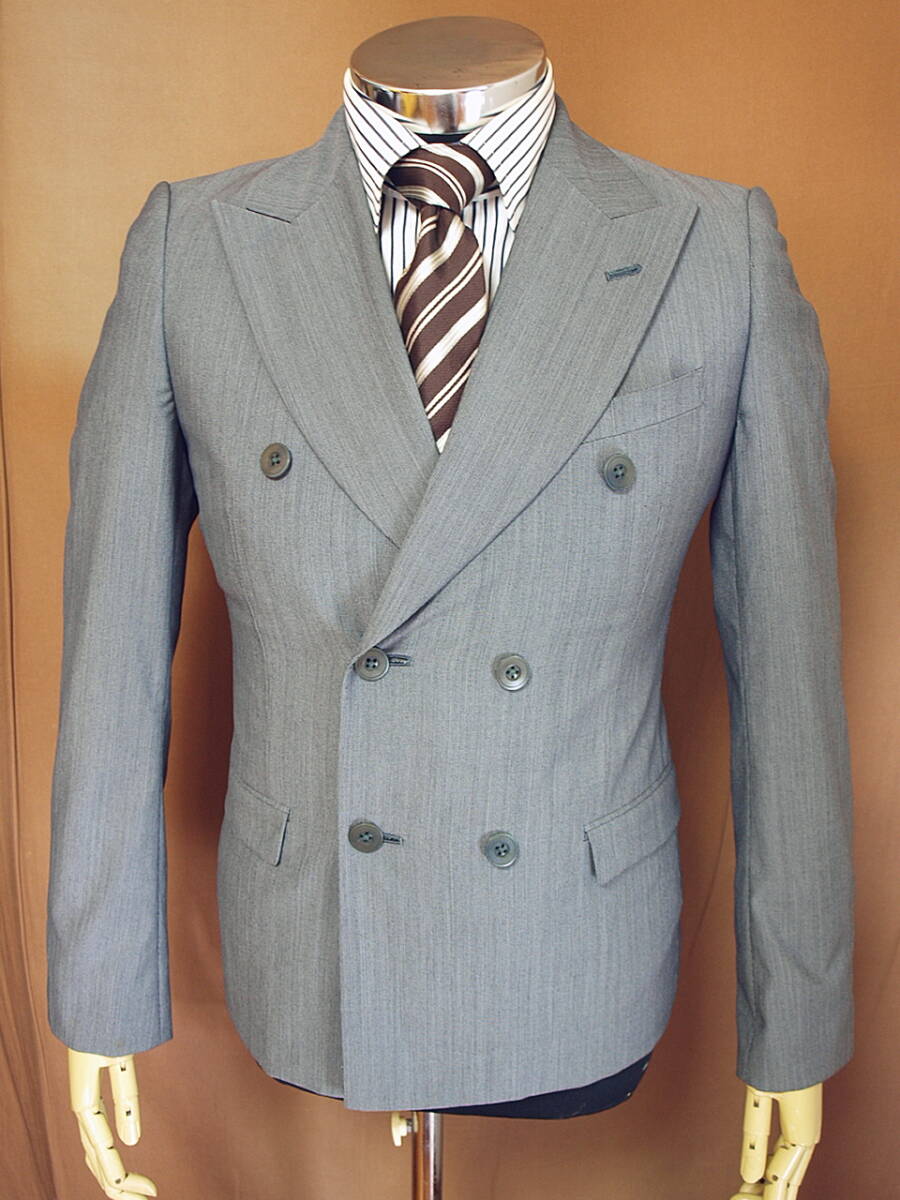 かなり個性的な1着で、タイトな6x2のダブルのブレザー