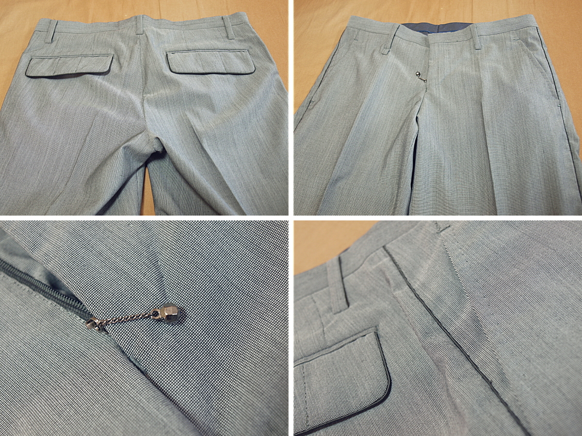 スラックスのサイドには黒のライン(パインピング)が施してあります。
