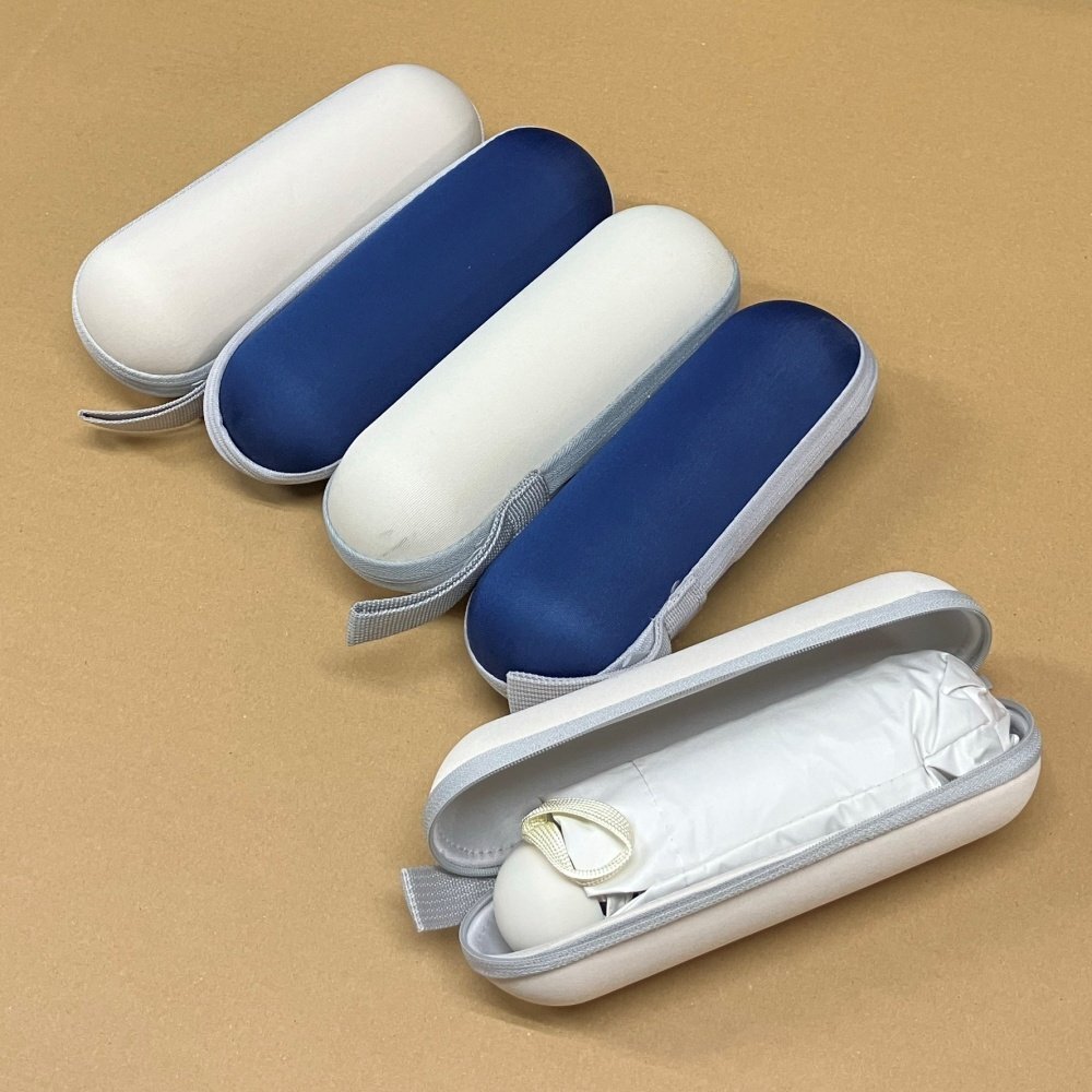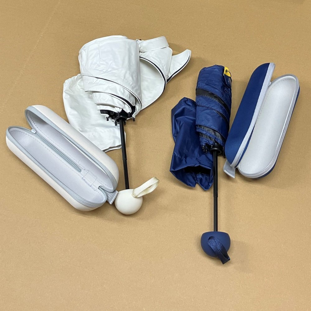 軽量コンパクトな傘(白色3個/紺色2個)の5個セットとなります。