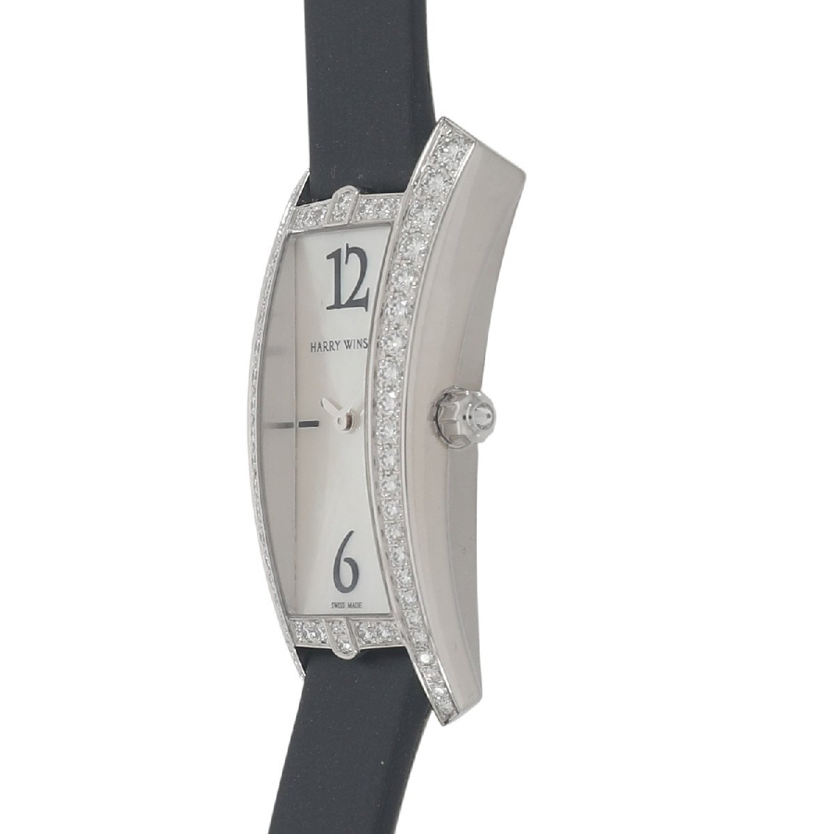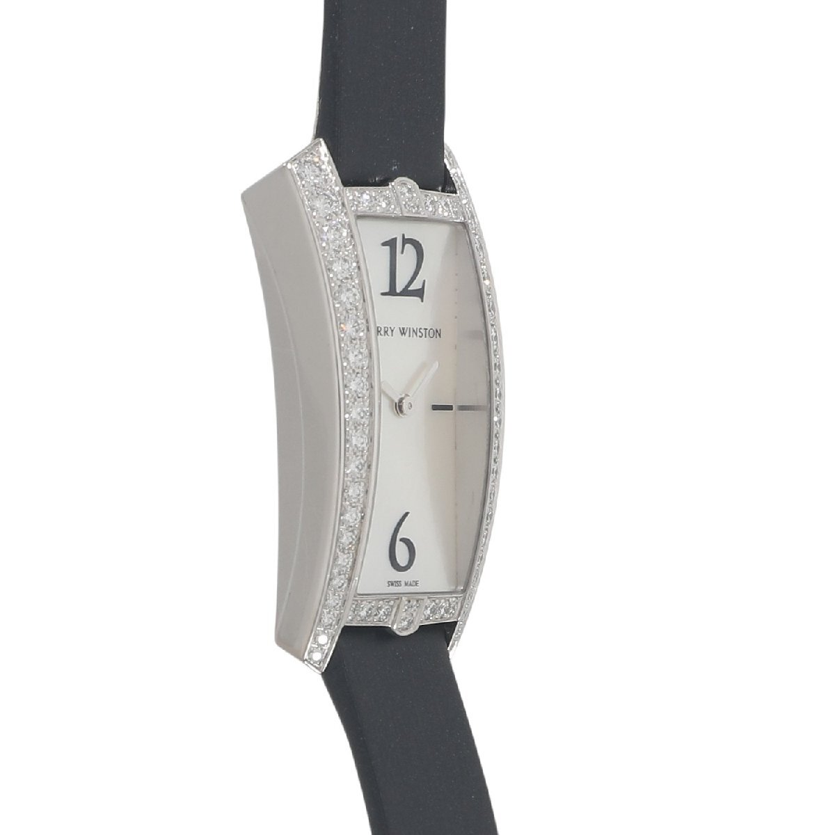 | モデルについて | キングオブダイヤモンドとも称されるハリーウィンストン。アールデコ調のデザインが人気で、ニューヨーク5番街(フィフスアベニュー)にちなんで名づけられた、ブランドのアイコン的コレクションであるアヴェニュー。縦長のケースは台形をモチーフにデザインされており、上部から下部へ掛けて徐々に細くなるシェイプがアヴェニュートラフィックの特徴と言えます。ケースの側面から見て解るように、ケースもガラスも流麗なカーブを描いており、エレガントさが際立つのはもちろんの事、同時に手首への装着感も抜群です。ハリーウィンストンらしくベゼル部分には大粒で上質なダイヤモンドがふんだんにセッティングされています。 |