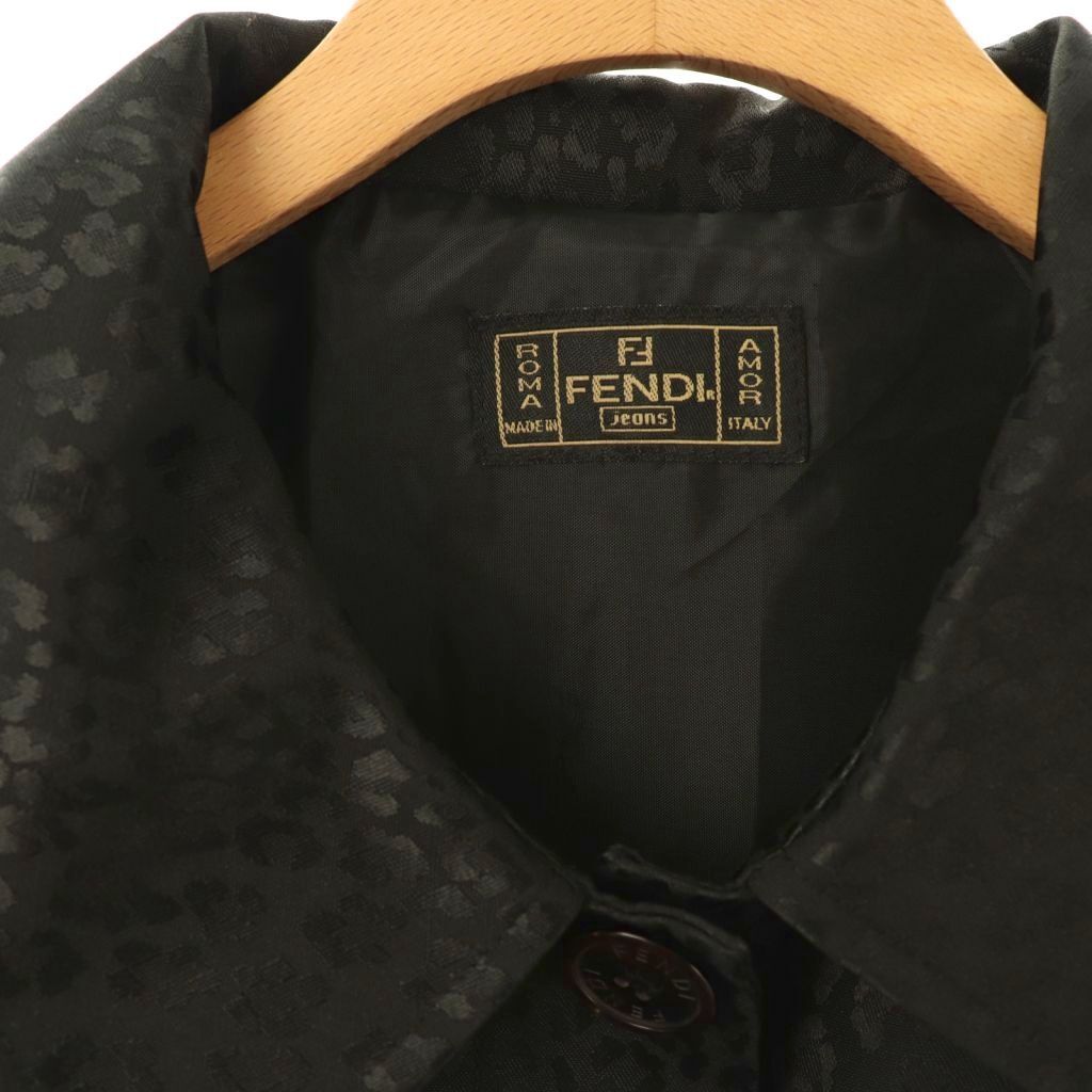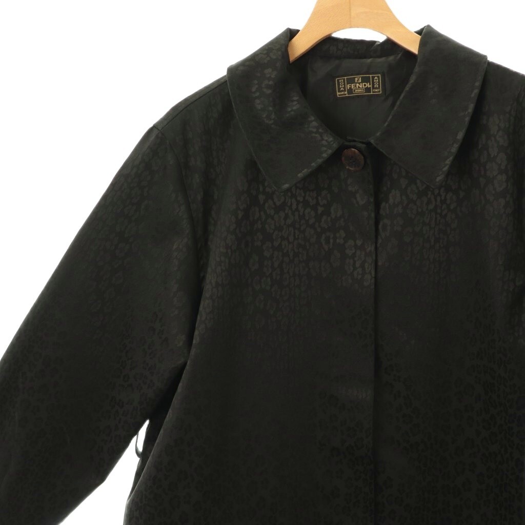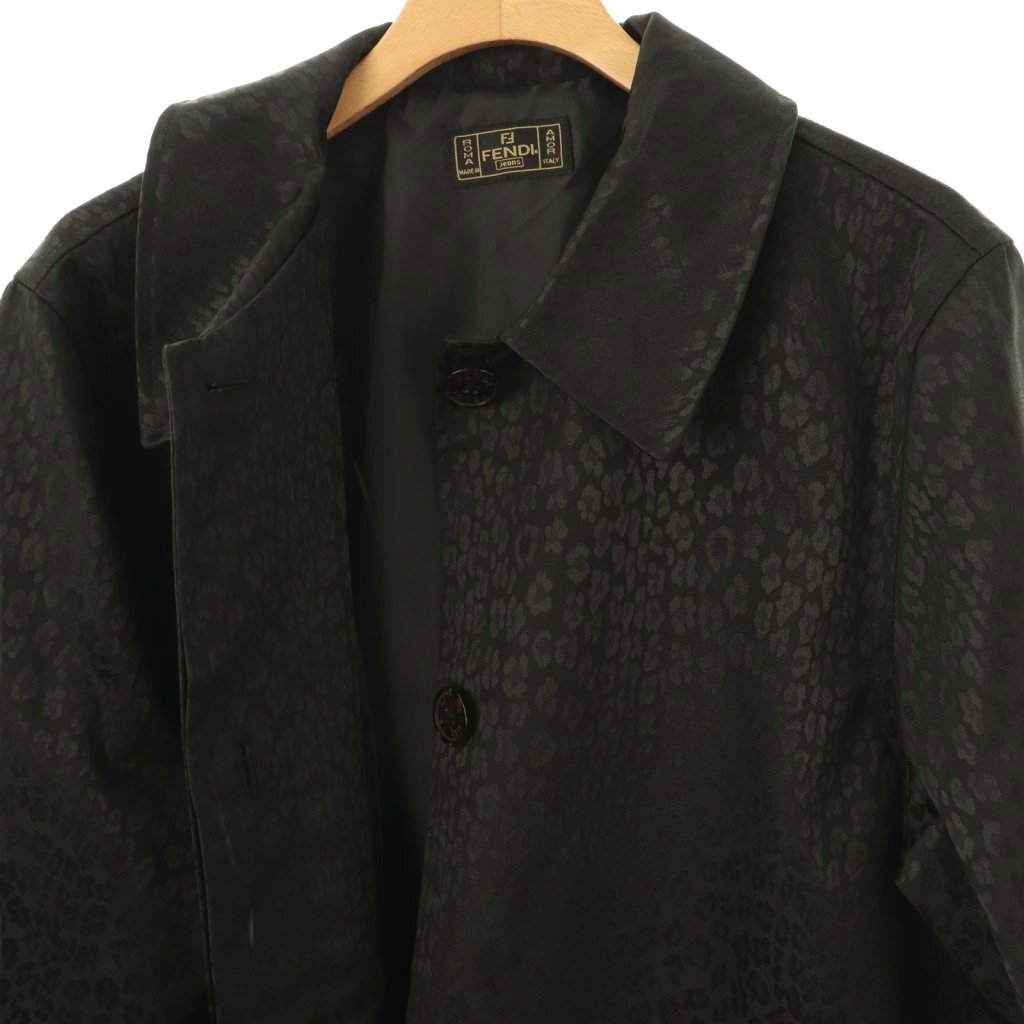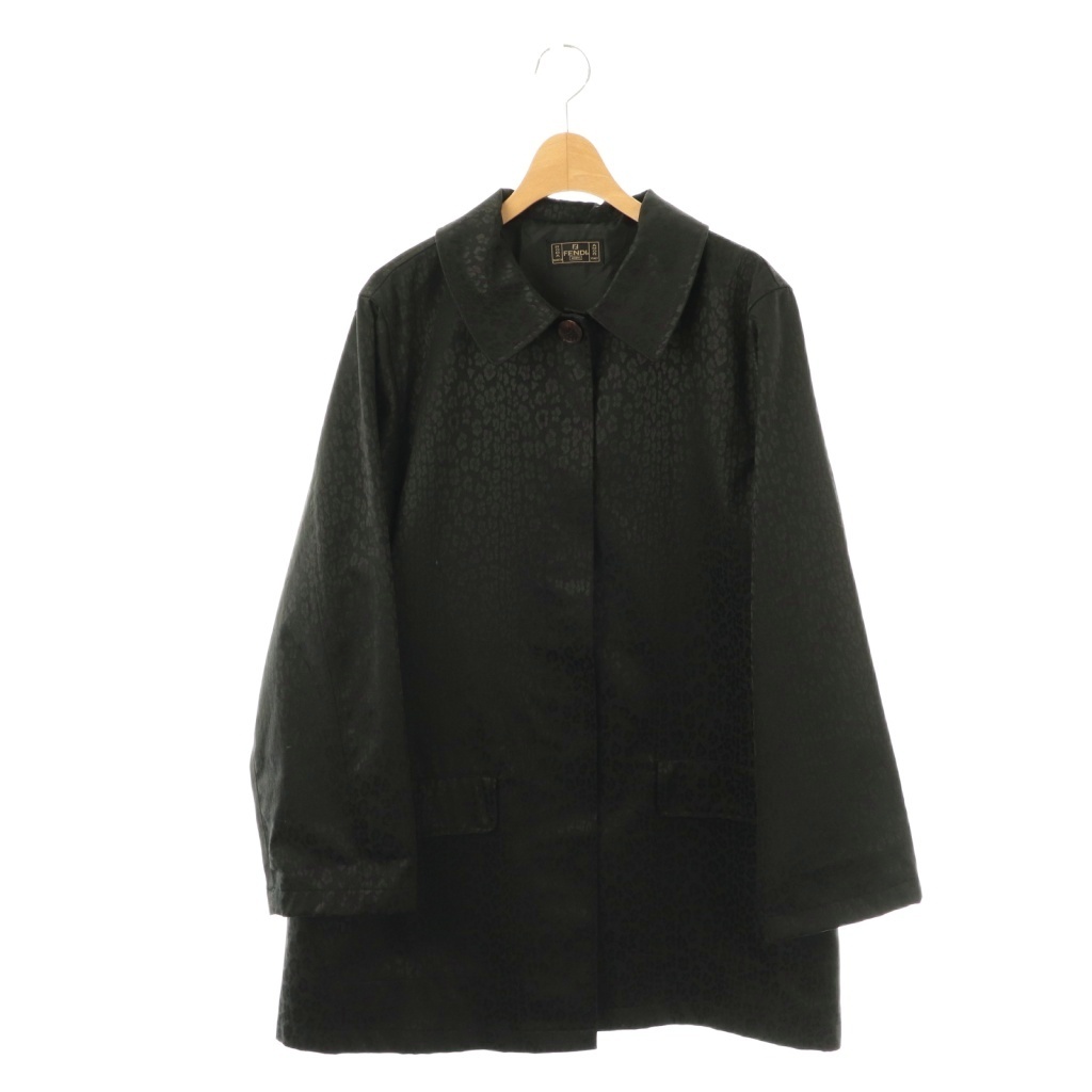 フェンディ FENDI ジーンズ jeans レオパードプリント ステンカラーコート ロング ブラック /HK ■OS レディース