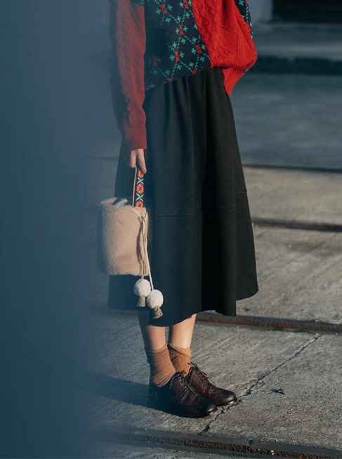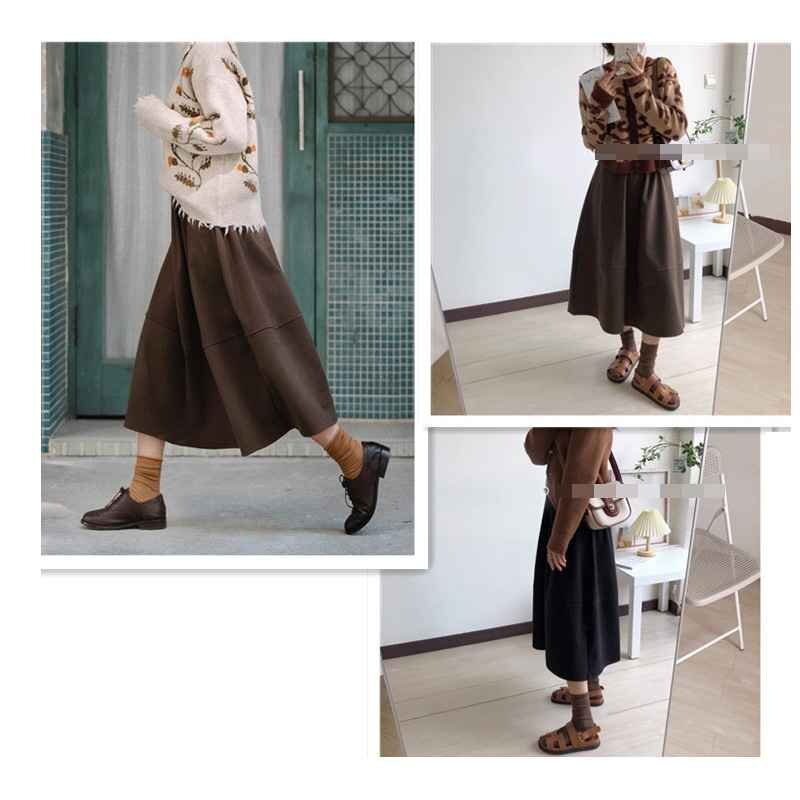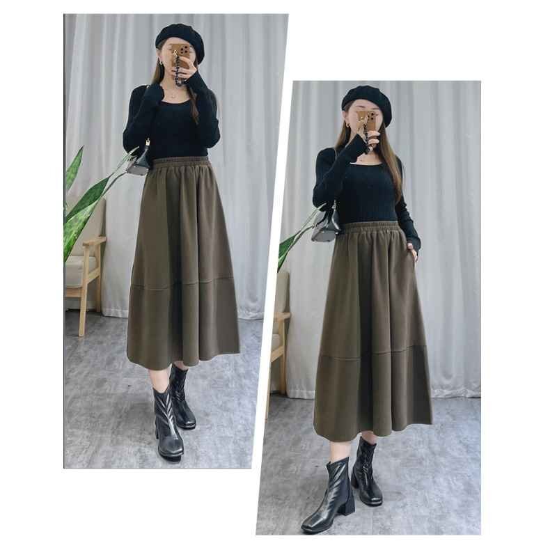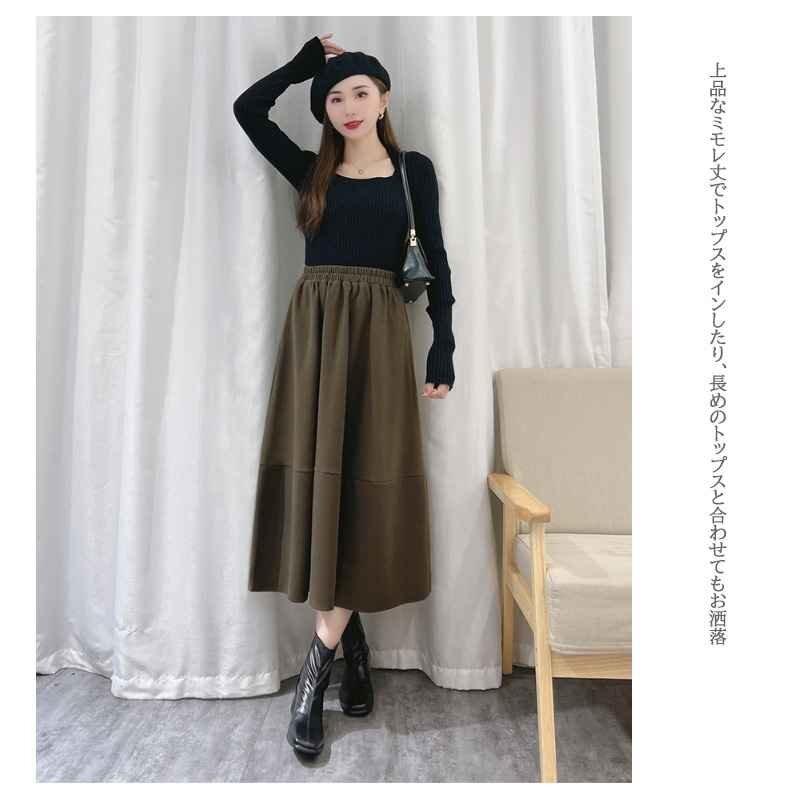 ・上品なミモレ丈でトップスをインしたり、長めのトップスと合わせてもお洒落です。